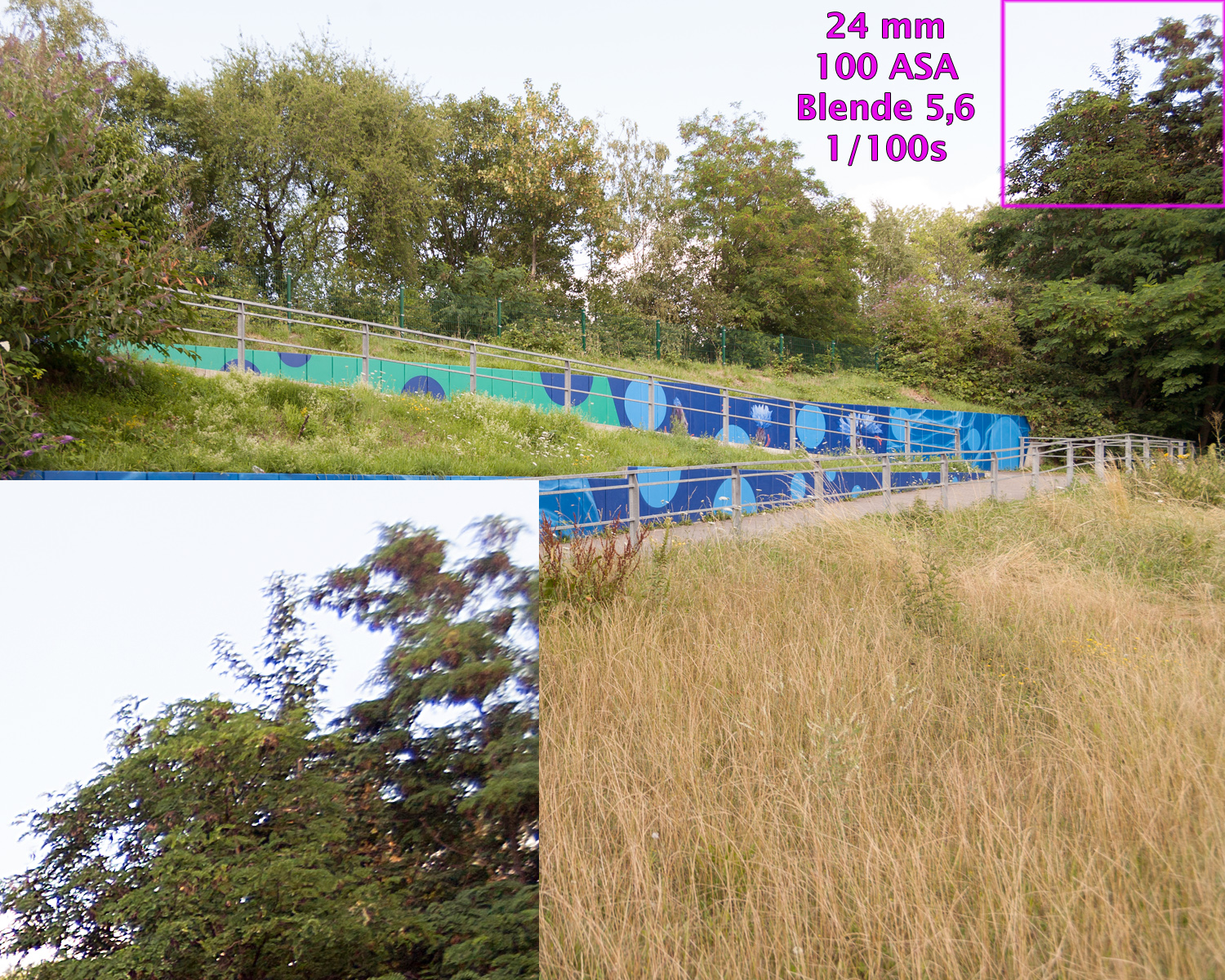 Das EF 24-85 werde ich nur noch an filmbasierten Kameras verwenden. Zwar läßt sich dann die Verzeichnung nicht beseitigen, aber die Eckenprobkleme sind wesentlich weniger ausgeprägt. Die EOS 5D mit 12,8 Megapixeln fordert das Objektiv, bei Offenblende bzw. unterhalb von 1:8 ist es für meine Zwecke nicht scharf genug.
