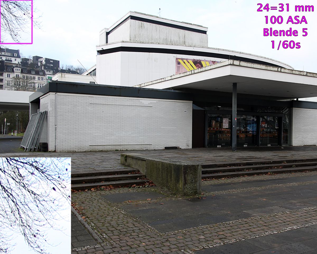 Das EF 24-85 USM entspricht an den APS-Kameras EOS IX bzw. EOS IX Lite in etwa einem 28-105mm-Objektiv, da die Negativfläche von APS-Filmen etwas kleiner ist als bei Kleinbildkameras (Cropfaktor 1,2). An den Profi-dSLRs von Canon mit APS-H-Sensor (Verlängerungsfaktor 1,3) entspricht es einem 31-110 mm-Objektiv. Also mußte ich das Objektiv endlich einmal an einer APS-H-Kamera probieren, durch den leichten Crop werden die „matschigen“ Bildecken weggeschnitten, das Ergebnis sollte somit besser ausfallen als an Vollformat, auch aufgrund der moderaten Auflösung der Kamera von nur 10 Megapixel.