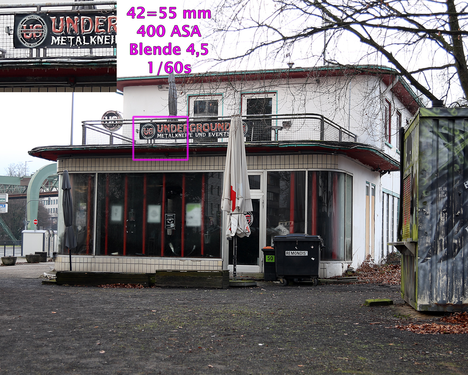 Alle Beispielaufnahmen entstanden freihand mit Programm-Automatik, wurden gespeichert als CR2, gewandelt mit Canon DPP und bearbeitet mit Photoshop CS4. Bildausschnitt, Helligkeit, Farben, Lichter / Schatten sowie Schärfe wurden korrigiert, die Größe wurde auf 1500 Pixel bikubisch verkleinert. In alle Aufnahmen sind 100%-Ausschnitte sowie die Aufnahmeparameter einmontiert.