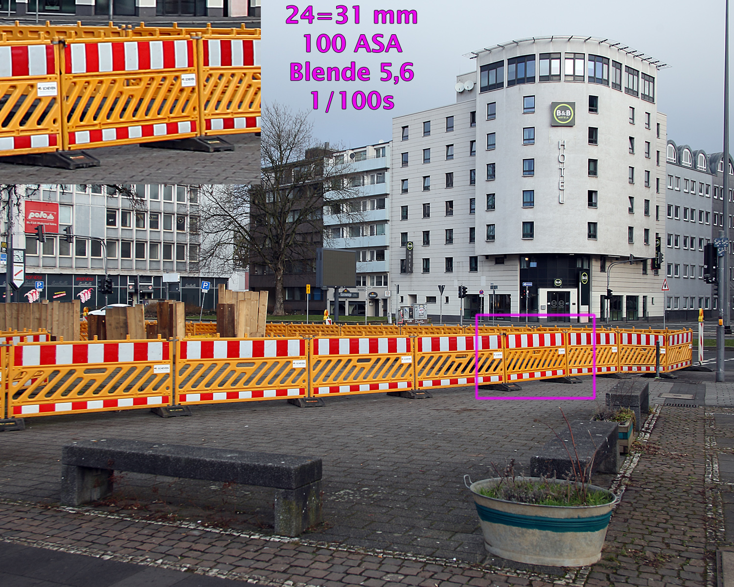 Das EF 24-85 harmoniert mit der EOS 1D Mark III besser als mit den Vollformatkameras 5D bzw. 5D Mark III. Wie erwartet werden die unscharfen Ecken weggeschnitten, trotzdem ist die Offenblende zu vermeiden, zwei Stufen sollte abgeblendet werden. Ein entscheidender Nachteil ist natürlich die Tatsache, daß weder die Kamera noch das Objektiv einen eingebauten Stabilisator haben, also ist die Kombination eigentlich nur etwas für helle Sonnentage oder alternativ hohe Sensor-Empfindlichkeiten. 400 ASA war am Wintertag meist nicht genug, 100 ASA definitiv „zu langsam“ und ergab Verwacklungen. Also habe ich das Objektiv wieder in die OVP gepackt und eingelagert, die APS-H-Kameras von Canon nutze ich zukünftig mit anderen Objektiven aus meinem Bestand.