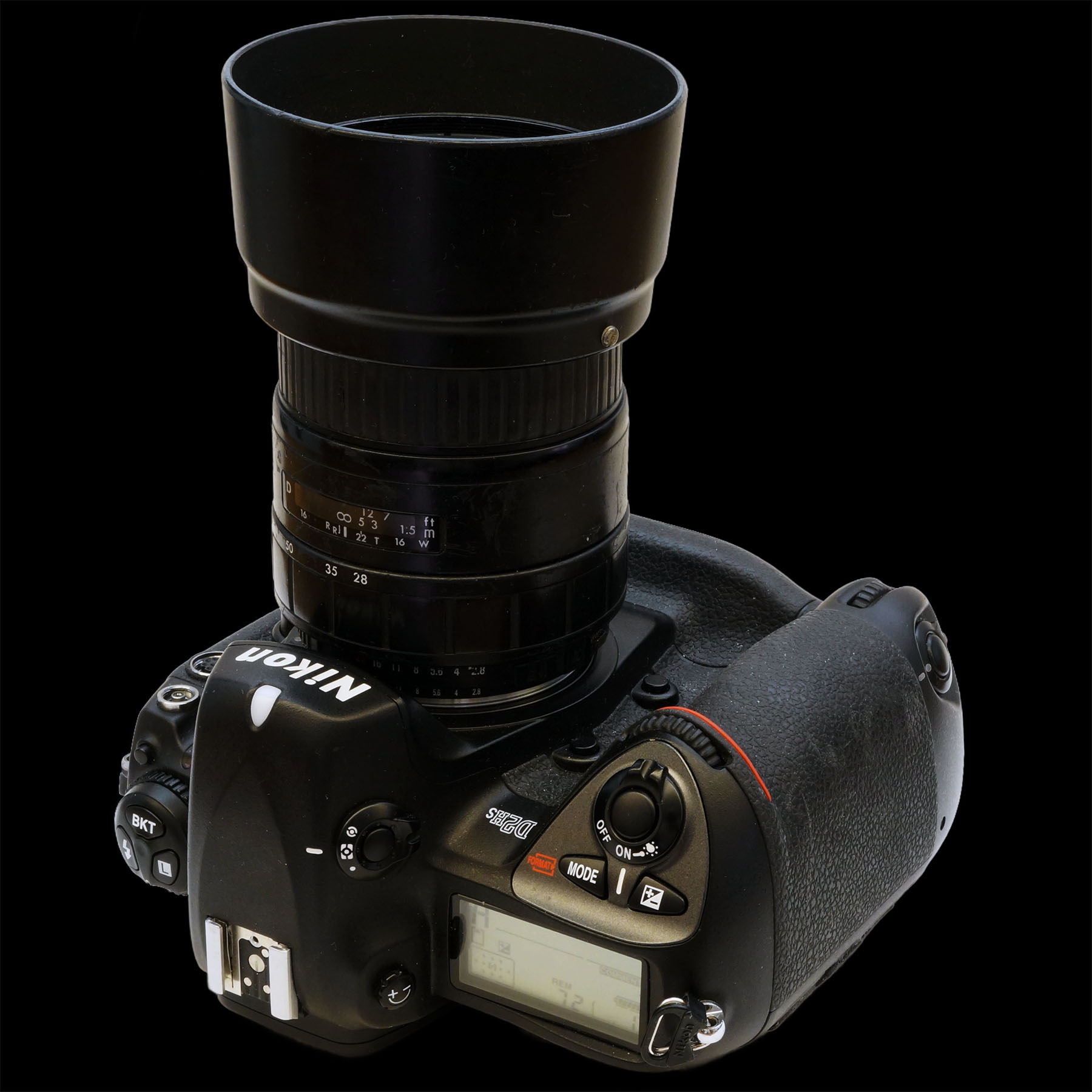 Eigentlich sollte nach der braven 6 Megapixel Halbformat Nikon D70(s) Vollformat kommen: die 16 MP Nikon D4. Ich hatte aber mehr Bock auf die etwas leichtere Nikon D2Hs. Die hat zwar nur 4 Megapixel, schafft aber 8 Bilder pro Sekunde und ist einfach fantastisch in die Hand gebaut! Die D4 läuft ja nicht weg ;-)