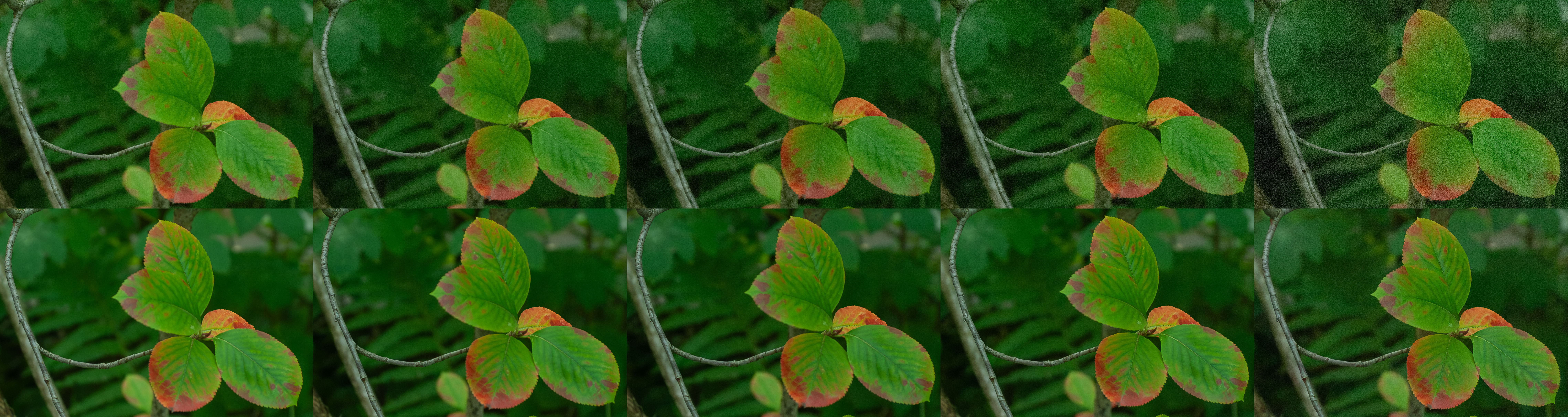- Zweite Reihe Crop 2-Modus, 44 mm Brennweite, f/5,6, KI-Entrauschen 50 Prozent, Schärfung 80/2,8: ISO 800, ISO 1.000, ISO 1.250, ISO 1,600, ISO 3.200