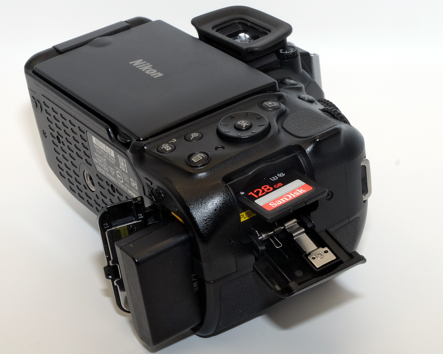 Unter die Kamera kann offiziell kein Batteriegriff mit Hochformatauslöser montiert werden. Der Zubehörhandel bot solche jedoch an, wenn sie auch nur mit einem kleinen Trick benutzbar sind. In die Griffe können zwei Akkus eingesetzt werden, der Hochformatauslöser der Griffe muß jedoch mittels Kabel mit der Fernauslöserbuchse der Kamera verbunden werden, eine interne Verbindung hat Nikon nicht eingebaut, dieses Feature blieb den höhenwertigen Modellen der D7x00-Klasse vorbehalten.