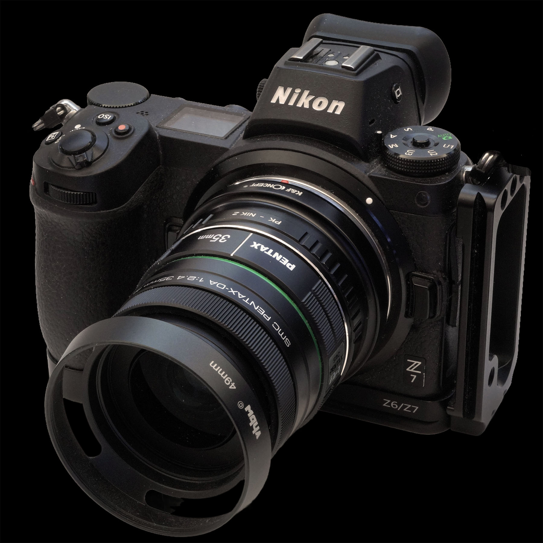 Dem SMC PENTAX-DA 1:2.4 35mm AL wird von Pentax-Anhängern attestiert, dass es ab Blende f/5,6 vollformat-tauglich wird. Was ich mangels Vollformat Pentax K1 nicht überprüfen kann. Es dürfte aber stimmen, denn auf die spiegellose Vollformat Nikon Z7 adaptiert, zeichnet das fürs 15x23 mm APS-C Sensorformt vorgesehene 35er tatsächlich das volle Format aus. Da vignettiert nichts, keine Unschärfe in den äußersten Bildecken! Was jetzt nicht der letzte Beweis ist, denn mangels Blendenverstellung des Blendenring-losen 35ers musste mit Blende f/22 fotografiert werden. Es gibt Pentax K-/Nikon Z-Adapter, die Blendenbetätigung bieten, mir aber zu teuer und vollkommen unnötig sind.