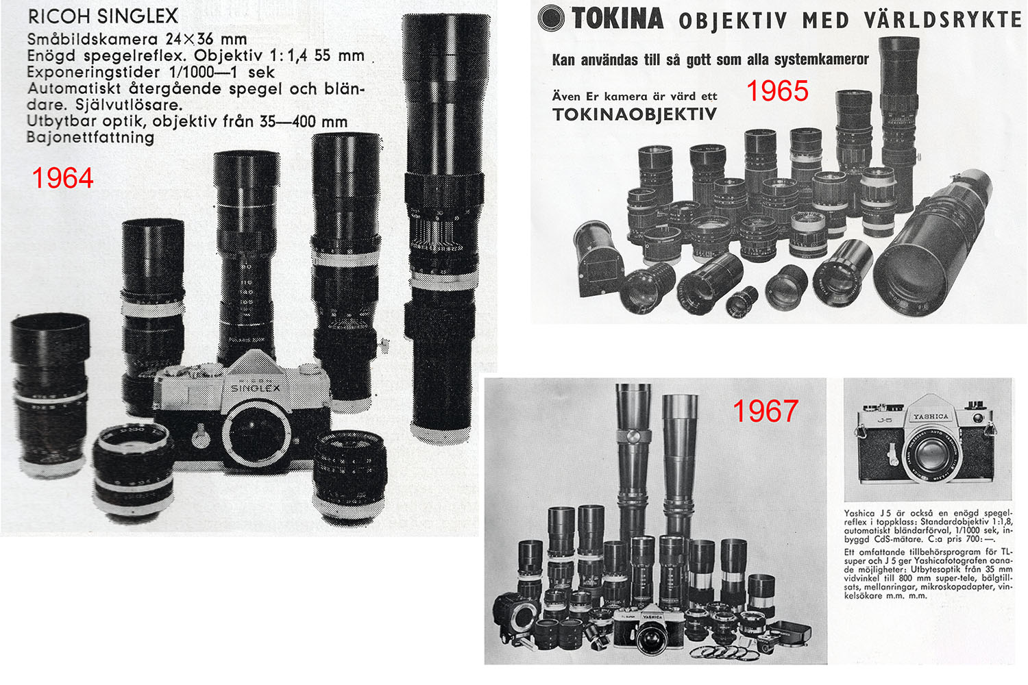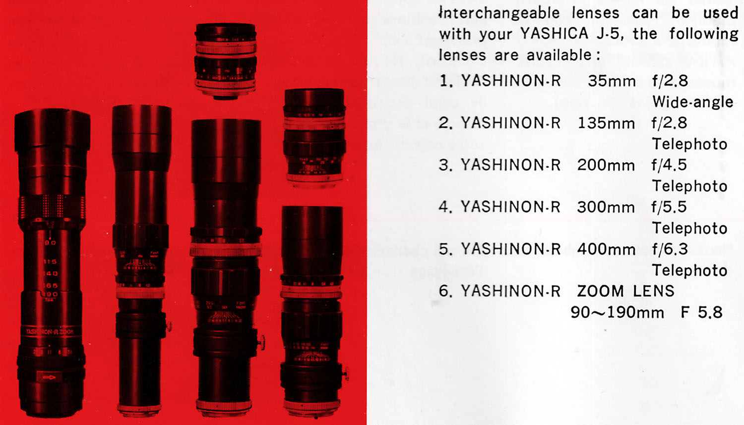 Die langen Brennweiten 200, 300 und 400 mm waren von Yashica allesamt zugekauft. Auftragsproduktionen von SUN, Tokina? In diversen Ausführungen im Beitrag "Armee" der Klon-Objektive – (k)ein neues Sammelgebiet" anzuschauen.