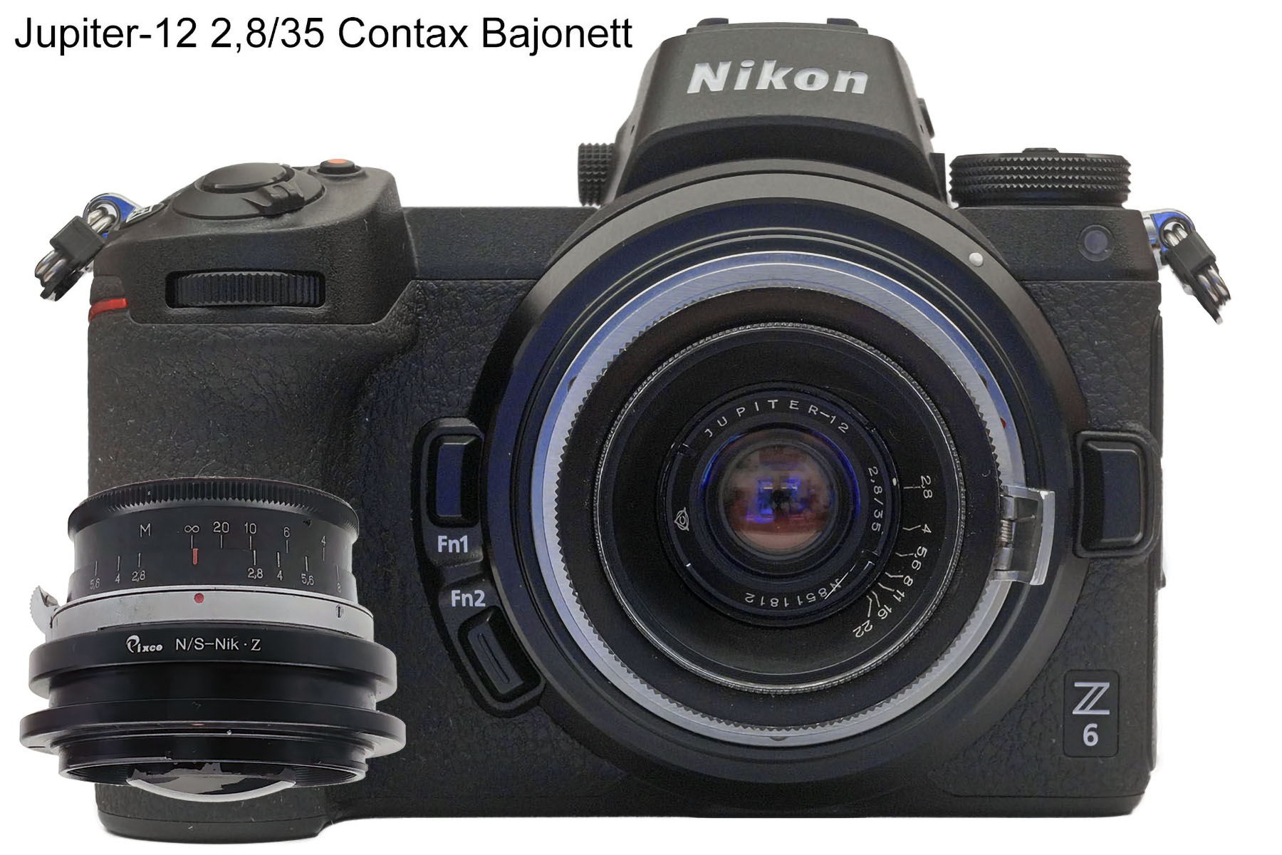 Mit deutlich mehr Aufwand und Teil-Selbst-Adapterbau lassen sich auch Contax- und Nikon Messucher-Normalobjektive mit Innenbajonett auf der spiegellose Systemkamera einsetzen! Die russischen Zeiss-/Contax-Nachbauten/Kopien inklusive. Ausführlich beschrieben im Beitrag: "Nikon Z6 Zeiss-Opton Sonnar 1:1.5 f=50mm"