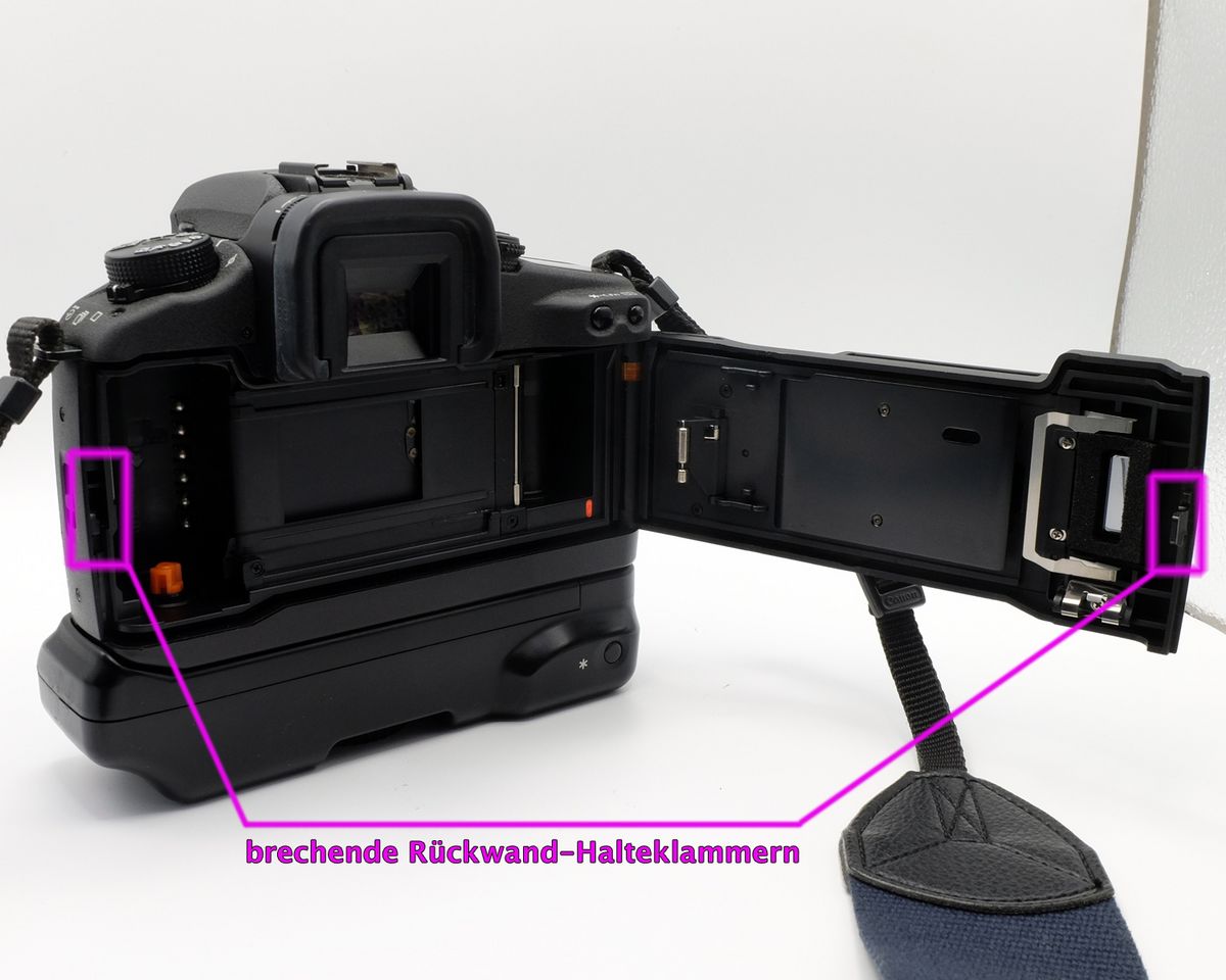 Der Schließmechanismus viele Einsteiger- und Amateurmodelle ist aus Kostengründen ein Spritzgußteil, dessen Kunststoff im Lauf der Jahre die zugesetzten Weichmacher verliert und darum hart und spröde wird, somit bei Belastung heutzutage einfach bricht. Die Belastung, die die Federn über die Kleinbildpatrone auf die Rückwand ausüben, reicht aus, um die Haltekammern abzureißen. Dieses Problem haben auch andere Hersteller, beispielsweise die Nikon F80 ist ebenfalls stark bruchgefährdet.