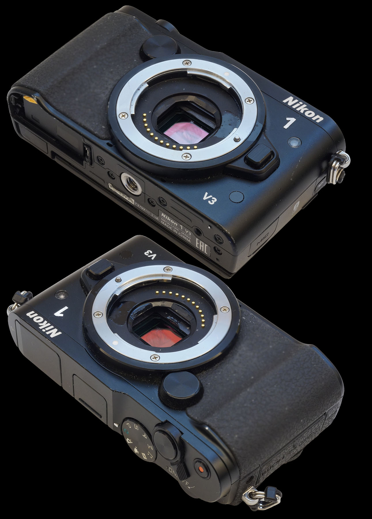 Als Digitalkamerafan mit einem Hang zum Schrottsammeln ;-) hatte ich 2023 für 10 Euro den oben abgebildeten Totalschaden Nikon 1 V3 erworben.