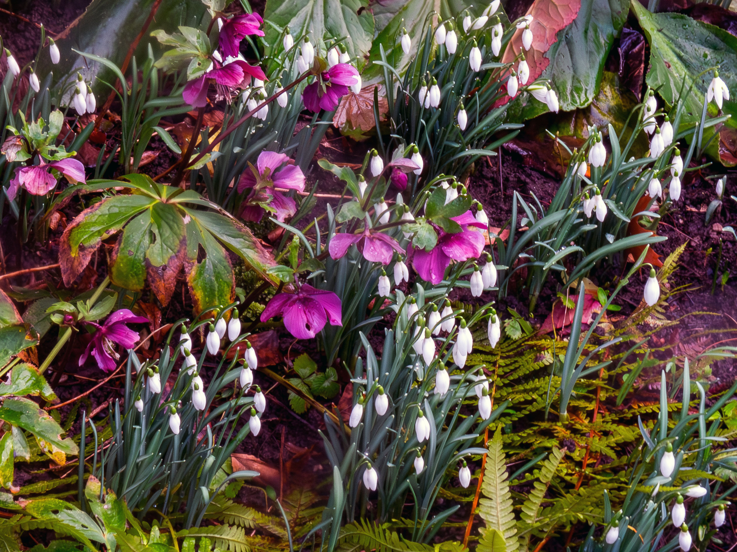 Die Solo-Schneeglöckchen ISO 500, Zeitautomatik, 1/15 s, 24 mm = 110 mm Brennweite @KB, Schneeglöckchen und Christrosen ISO 500, Zeitautomatik, 1/20 s, 18,9 mm = 87 mm @KB. Alles Offenblende um f/2,8 aus der Hand. Wie man sieht, helfen die langen Brennweiten der XZ-2! Möglicherweise hat auch eine primitive selbstgebastelte Streulichtblende aus Pappe noch etwas zur Abmilderung der Riss-Reflexe beigetragen. Vielleicht nehme ich die XZ-2 im Frühjahr doch noch mal auf eine Runde, wenn der Botanische Garten der Universität Bonn "loslegt" …