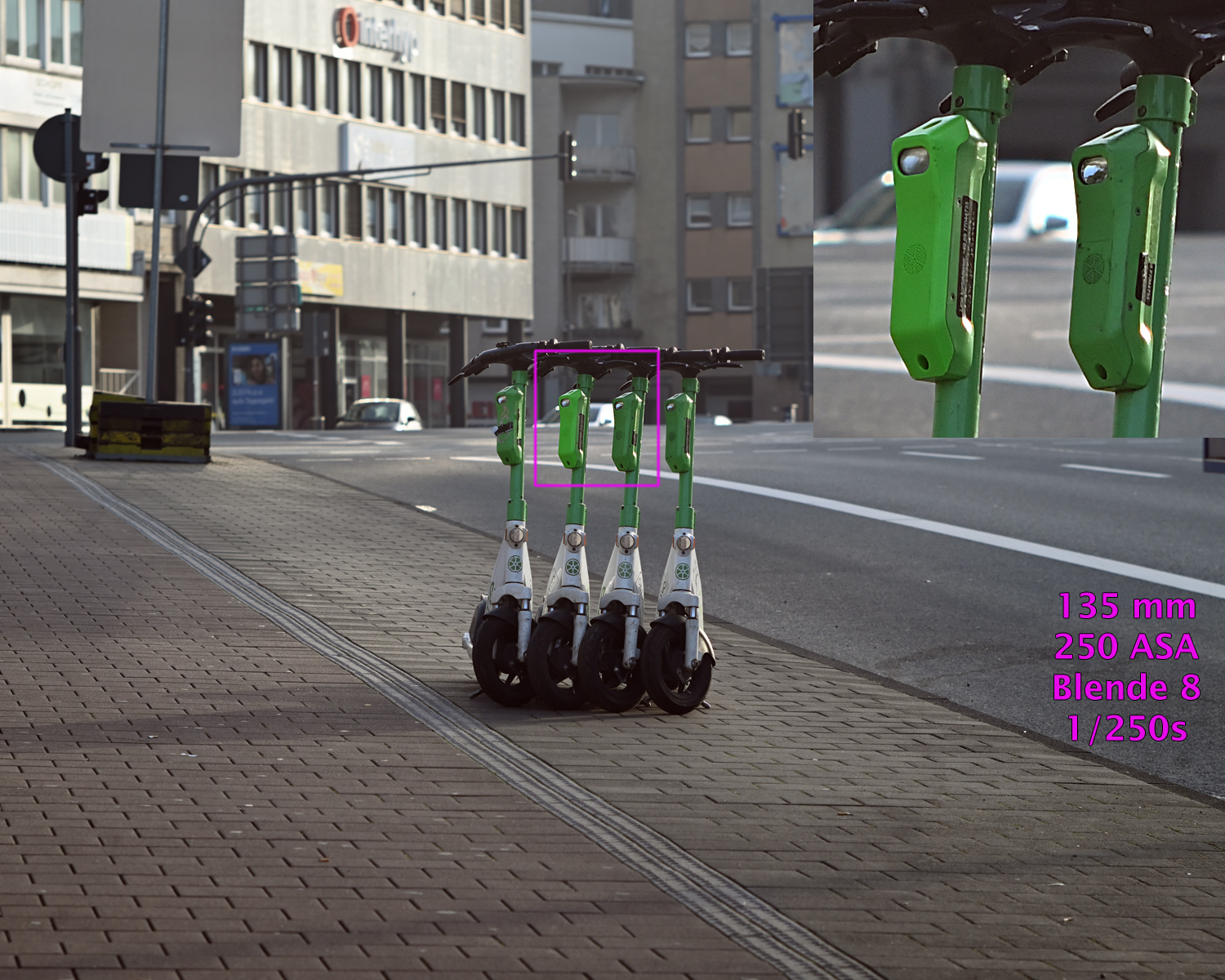 Alle Beispielaufnahmen entstanden freihand bei ASA-Automatik, Zeitautomatik, mit eingeschaltetem Bildstabilisator und bei Blende 8, gespeichert als NEF, gewandelt mit Nikon Capture NX-D und bearbeitet mit Photoshop CS4. Bildausschnitt, Helligkeit, Farben, Lichter / Schatten sowie Schärfe wurden korrigiert, die Größe wurde auf 1500 Pixel bikubisch verkleinert. In alle Aufnahmen sind 100%-Ausschnitte vergrößert einmontiert.