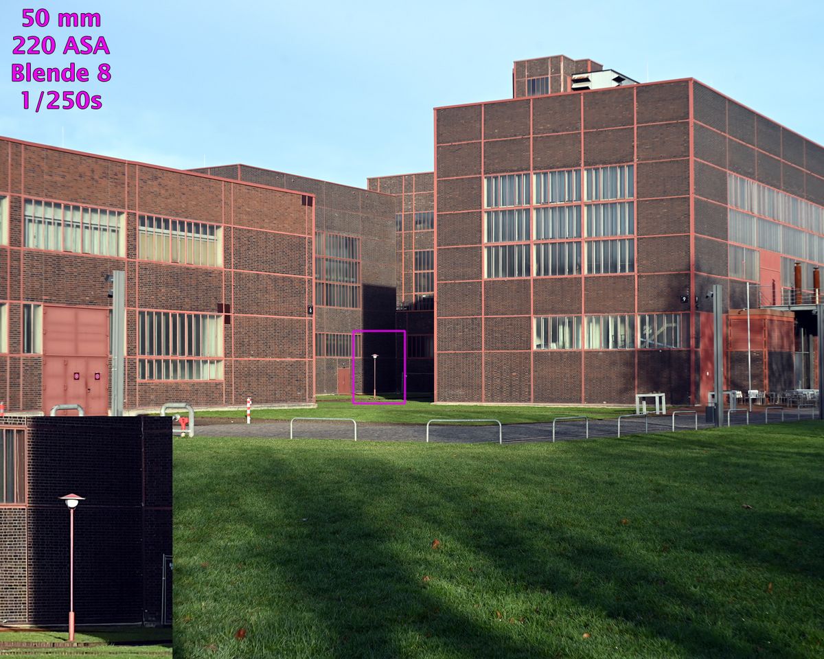 Das Objektiv verzeichnet nur gering, in den Bildern ist dieser Bildfehler praktisch nicht sichtbar. Das Objektiv ist am Vollformatsensor der Z5 und Offenblende erwartungsgemäß unscharf, Abblenden auf 8 steigert die Schärfe der Bildmitte, aber auch bei Blende 16-22 werden die Ecken jedoch nicht scharf. Die chromatischen Aberrationen sind bei allen Blenden praktisch nicht erkennbar.