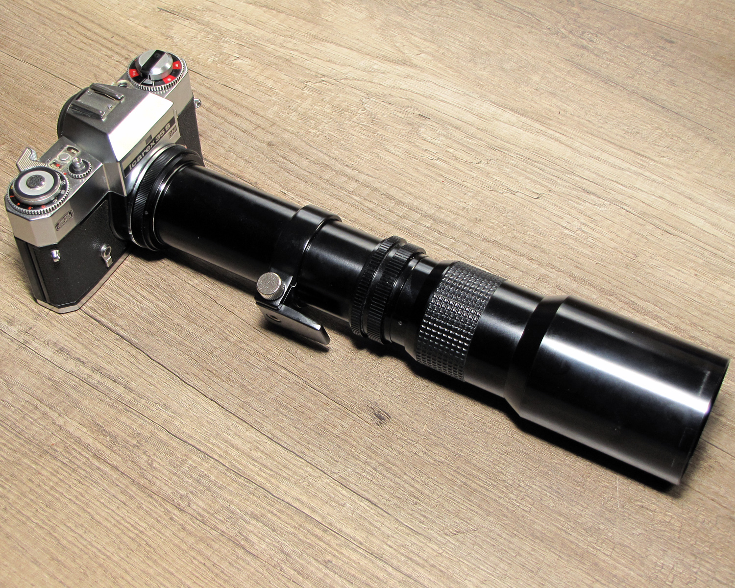 Eine Beroflex-„Wundertüte“ mit 50mm an den Adapter geschraubt ergab im Icarex-Sucher ein scharfes Bild bei Unendlich, also stimmte es, der Adapter dürfte in den 1960ern / 1970ern von der Zubehörindustrie hergestellt worden sein, damit Icarex-Fotografen T2-Objektive nutzen konnten.