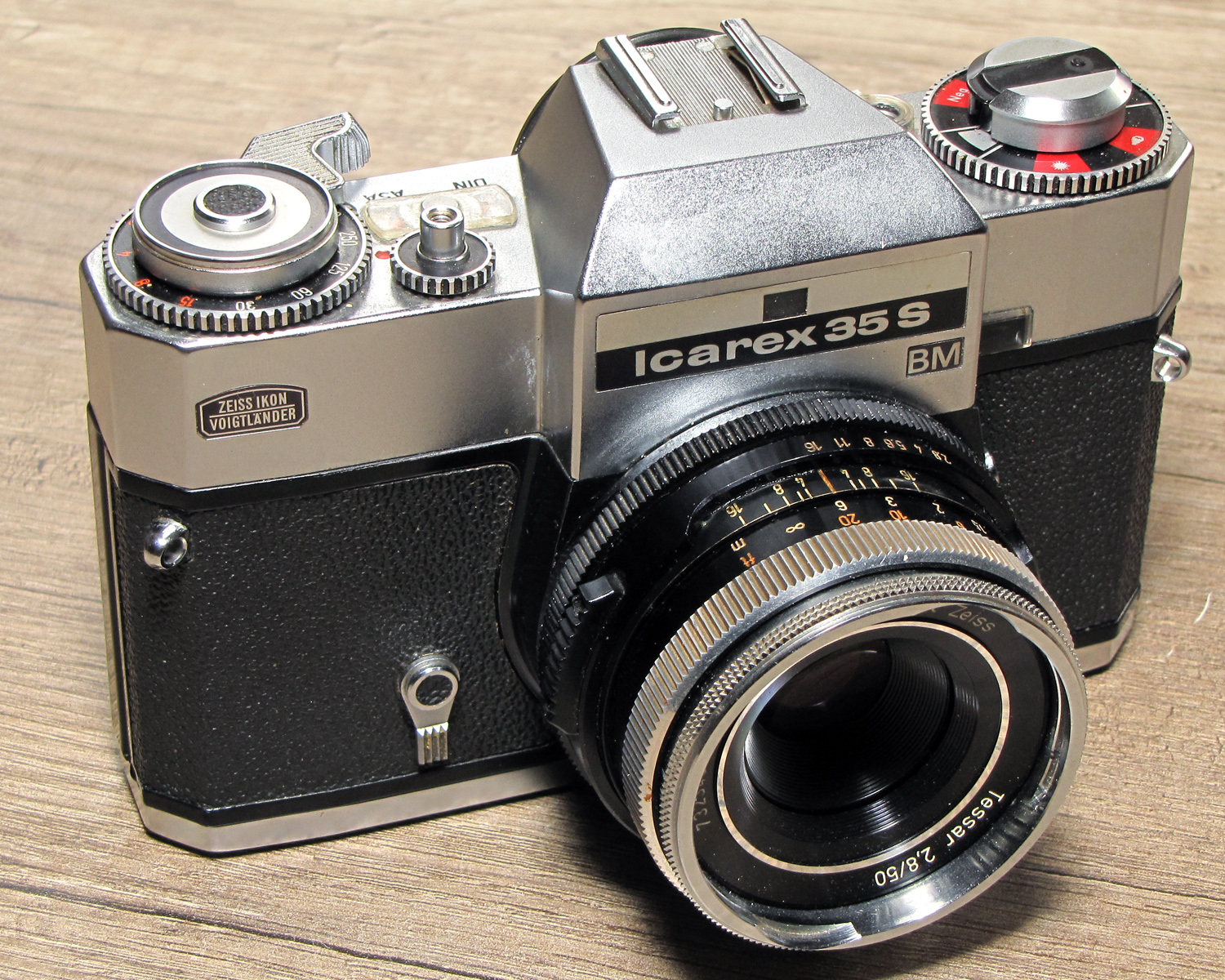 Die Icarex ist übrigens recht simpel gefertigt worden. Der mechanische Aufbau hat wenig mit dem präzisen Kamerabau „Made In Germany“ zu tun, wie man es von ZeissIkon, Rollei oder Voigtländer aus den 1950er her kannte. Statt aufwendig gefrästen Zahnrädern mußten Stanzteile ausreichen, auch die meisten anderen Bauteile sind gestanzt und meist nicht oder nur wenig nachbearbeitet. So konnte trotz Fertigung in Deutschland der Verkaufspreis günstig gehalten werden, die Icarex war günstiger als die Pentax Spotmatik, die Minolta SRT 101, die Canon FX und natürlich auch billiger als die Leicaflex. Auch im ZeissIkon-Konzern unterbot man alle anderen angebotenen Spiegelreflex-Kameras, die Contaflex oder die Ultramatic kosteten mehr und die Contarex fast das Dreifache! Trotzdem verkaufte sich die Icarex BM nicht.