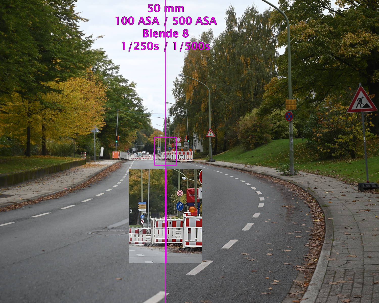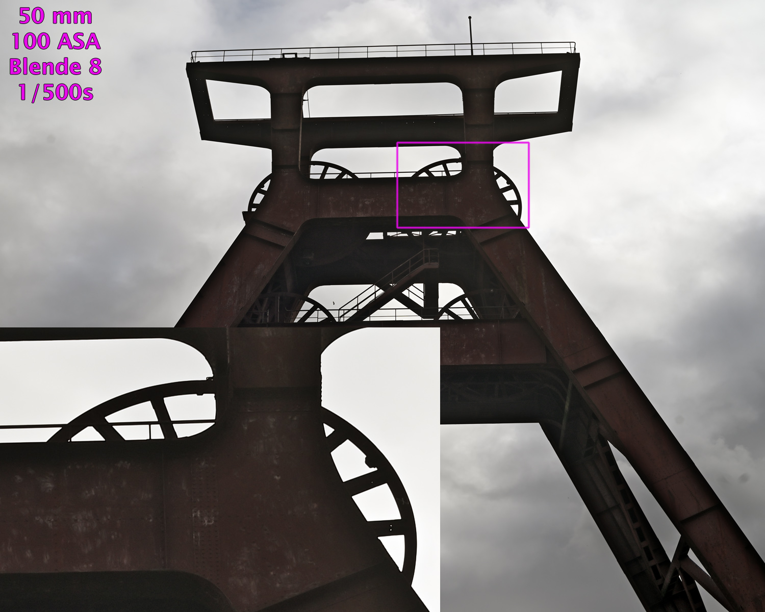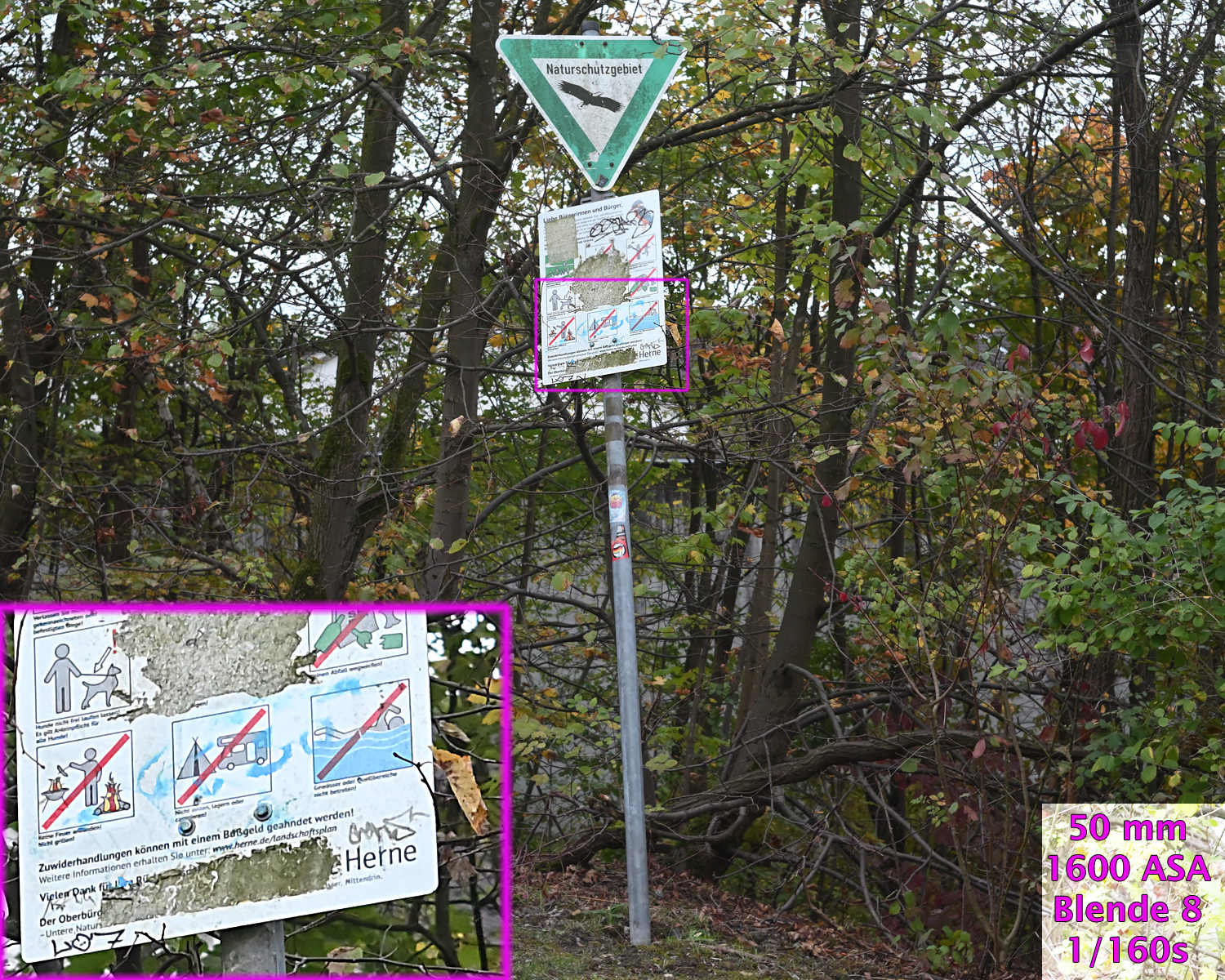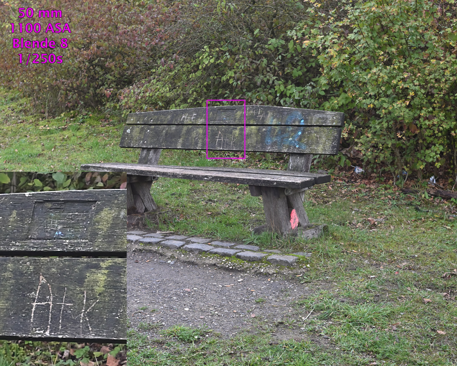 Alle Aufnahmen entstanden freihand bei ASA-Automatik, Zeitautomatik, mit eingeschaltetem Bildstabilisator und bei Blende 2,8 bzw. 8, gespeichert als NEF, gewandelt mit Nikon Capture NX-D und bearbeitet mit Photoshop CS6. Bildausschnitt, Helligkeit, Farben, Lichter / Schatten sowie Schärfe wurden korrigiert, die Größe wurde auf 1500 Pixel bikubisch verkleinert. In alle Aufnahmen sind 100%-Ausschnitte vergrößert einmontiert.