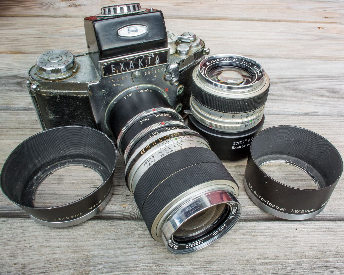 Im ersten Anlauf musste ich meine Topcon RE-2 notgedrungen mit einem Meyer-Optik Görlitz Primagon 4.5/35 bestücken, das in Exakta-Anschluss kam. Kein schlechtes Objektiv, aber eben kein Topcon!