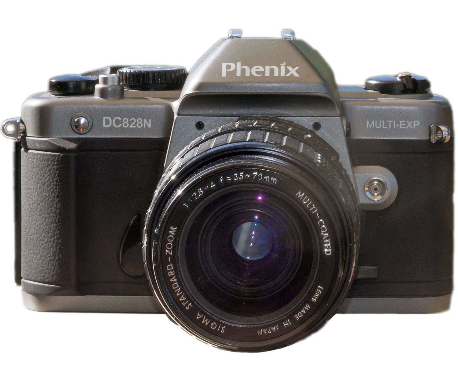 Das SIGMA STARDARD-ZOOM 1:2.8~4 f=35~70mm steckte auf der chinesischen Phenix DC828N, beide mit Pentax K-Bajonett. Tatsächlich war die Phenix eine eigenständige, einfachere chinesische SLR, die in den 1980er / 1990er Jahren hergestellt wurde und den Pentax-K-Objektivanschluss verwendet.
