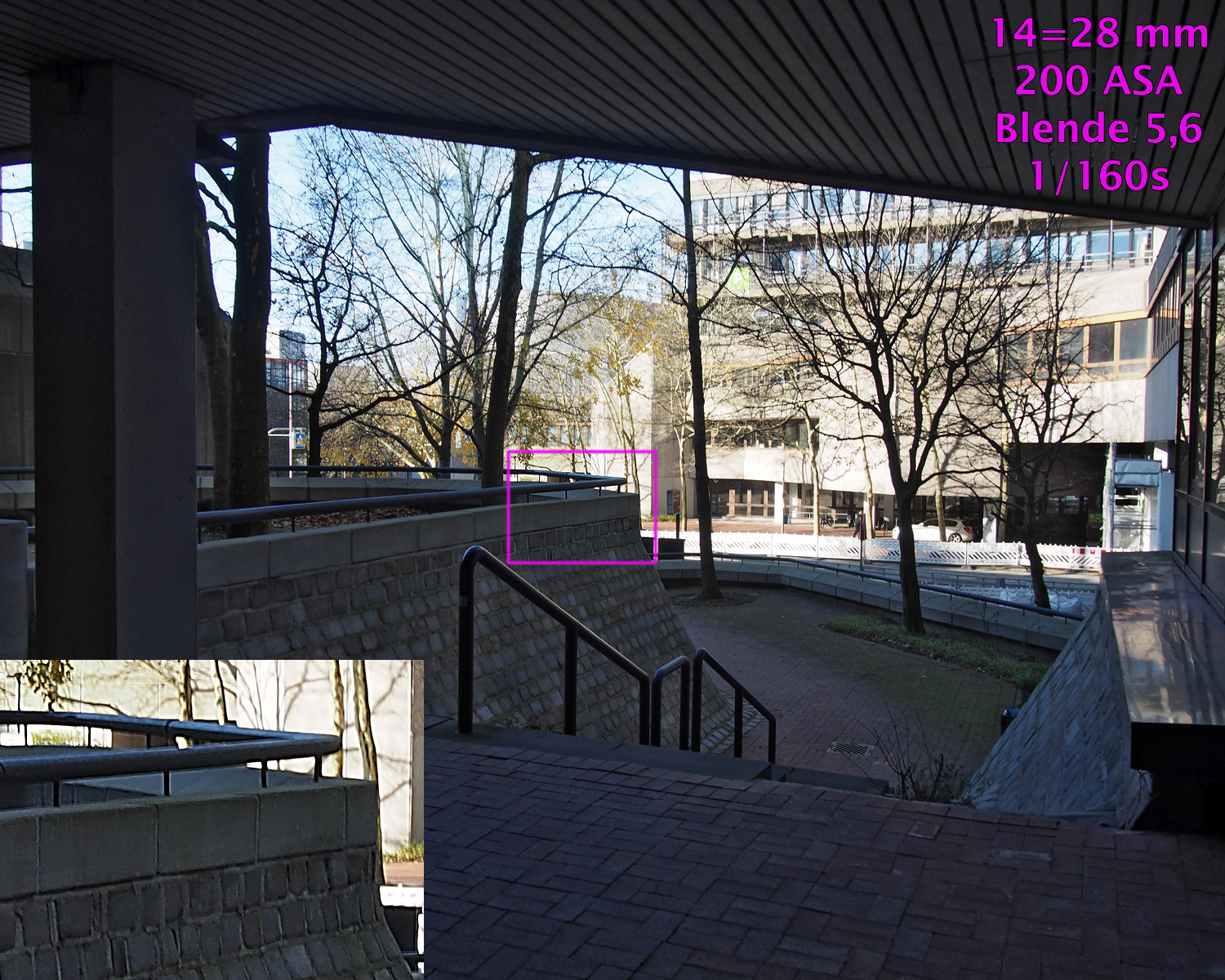 Trotzdem habe ich kein teures „Pro“-Zoom für meine mFT-Kameras gekauft, diese waren mir immer zu teuer und sie machen die kleine und leichte Kamera unhandlich, denn sie sind groß, weit ausladend und schwer. Selbst das 12-50, daß ich „zwangsweise“ mit der OM-D E-M5 erwerben mußte (weil die Kamera ohne Objektiv zum Kaufzeitpunkt vergriffen war), verkaufte ich nach nur einem einzigem Test, denn es verzeichnet bei 12mm fast 7% und vor allem: der Zoom erfolgt bei diesem Objektiv immer elektrisch, manuelles Zoomen wie beim 14-42 ist nicht möglich.