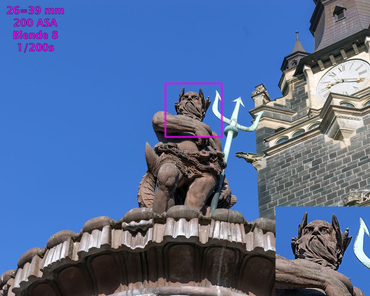 Dem Sensor merkt man das Alter an, der Dynamikumfang ist noch nicht so groß wie heutzutage, aber durchaus brauchbar. Die Kamera belichtet „auf die Lichter“, deshalb haben die Schatten teilweise wenig Zeichnung, die hellen Stellen „brennen“ dafür nur kaum aus. Bei niedrigen bis mittleren ISO-Zahlen rauscht die Kamera beherrschbar. 800 ASA sind noch durchaus nutzbar, bei 1600 / 3200 ASA steigt das Rauschen an und die Bilddetails werden von der Kamera dadurch stark „glattgebügelt“. Die ISO-Automatik der Kamera kann vom Anwender eingestellt werden, der obere Grenzwert ist in ganzen Stufen vorwählbar. Die Farben werden gut umgesetzt, mir gefällt die Farbabstimmung von Sensor und Bildaufbereitung.