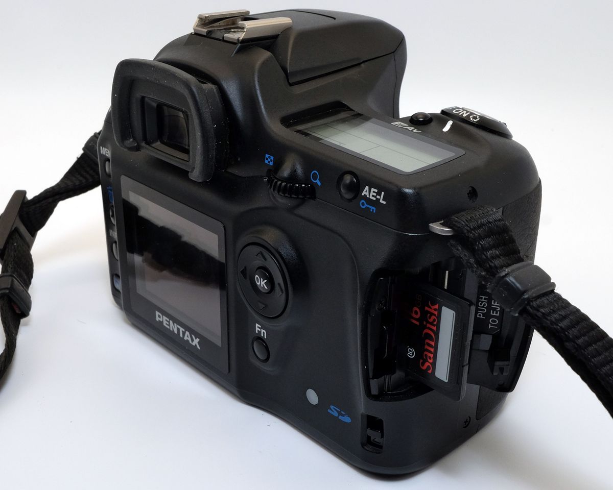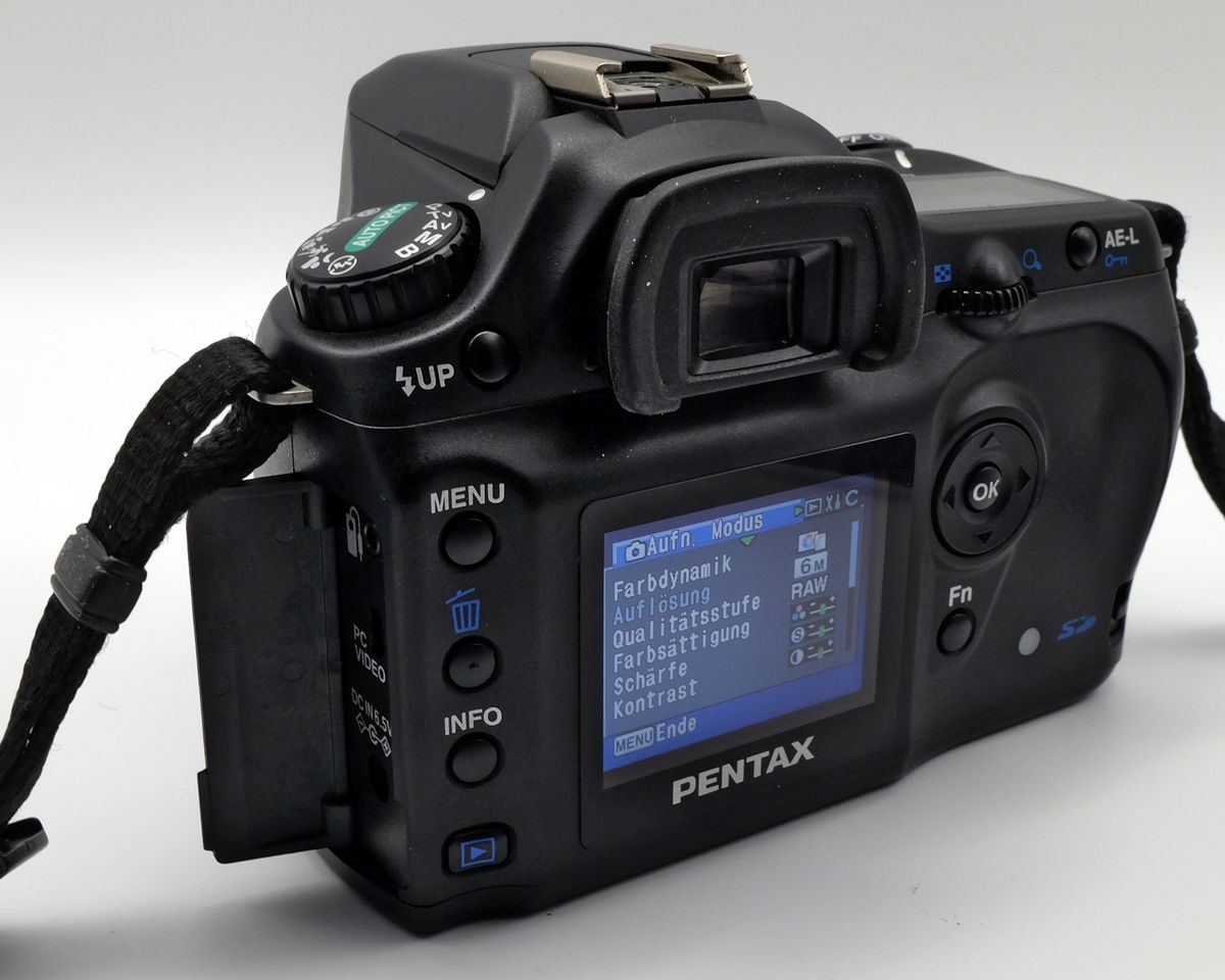 Die UVP betrug 899 Euro ohne Objektiv. 2026 ist der Gebrauchtpreis auf ca. 25-55 Euro je nach Zustand und Lieferumfang gefallen. Manchmal wird sie fälschlicherweise als Pentax’ erste digitale Spiegelreflex beworben, das war aber die *ist D. Ich bekam die Kamera Anfang 2026 von Ralf Janke überlassen, vielen Dank dafür! Die Vorbesitzer haben die Kamera kaum benutzt (ca. 1200 Auslösungen), sie kam in quasi ladenneuem Zustand bei mir an und alle fast Gebrauchsspuren stammen von mir.