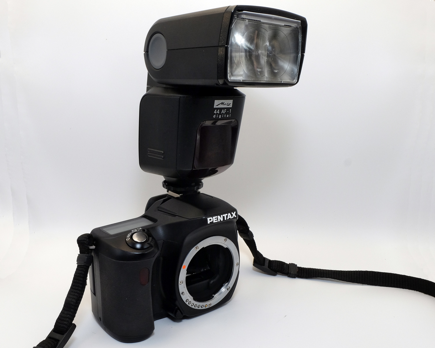 Als eine der wenigen Pentax-dSLRs versteht die *ist DS auch das „analoge“ Blitzprotokoll älterer Pentax-Systemblitze aus der vordigitalen Zeit, die Ergebnisse mit P-TTL-Blitzen sind aber ausgewogener, weil durch die Vorblitze das Umgebungslicht besser ausgewertet werden kann. Und die alten analogen Blitze funktionieren nur bei 200 und 400 ASA, höhere Empfindlichkeiten erfordern P-TTL-Blitze.