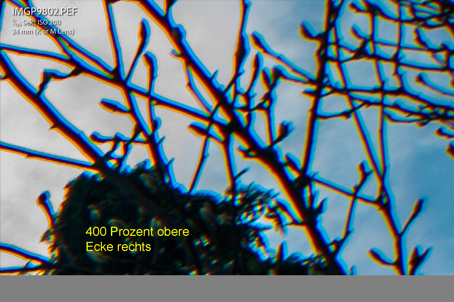 Wetter und Lichtbedingungen waren nicht identisch, aber das 20 mm Pentax ist einfach besser! Ohne in den Ecken bei Blende f/11 gut zu sein …