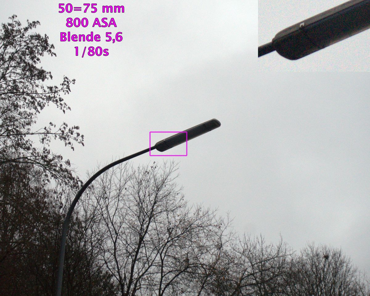 Alle Beispielaufnahmenentstanden mit dem SEL1650-Setobjektiv bei ASA-Automatik, gespeichert als ARW, gewandelt mit dcRAW, bearbeitet mit mit Photoshop CS4. Die Größe wurde auf 1500 Pixel bikubisch verkleinert. Schärfe, Verzeichnung, Vignettierung, Gradationskurve usw. wurde bearbeitet. In alle Beispielen sind 100%-Auschnitte einmontiert.