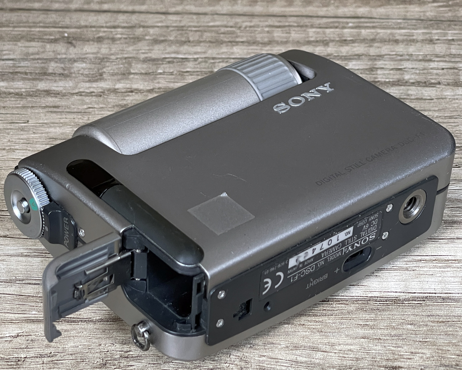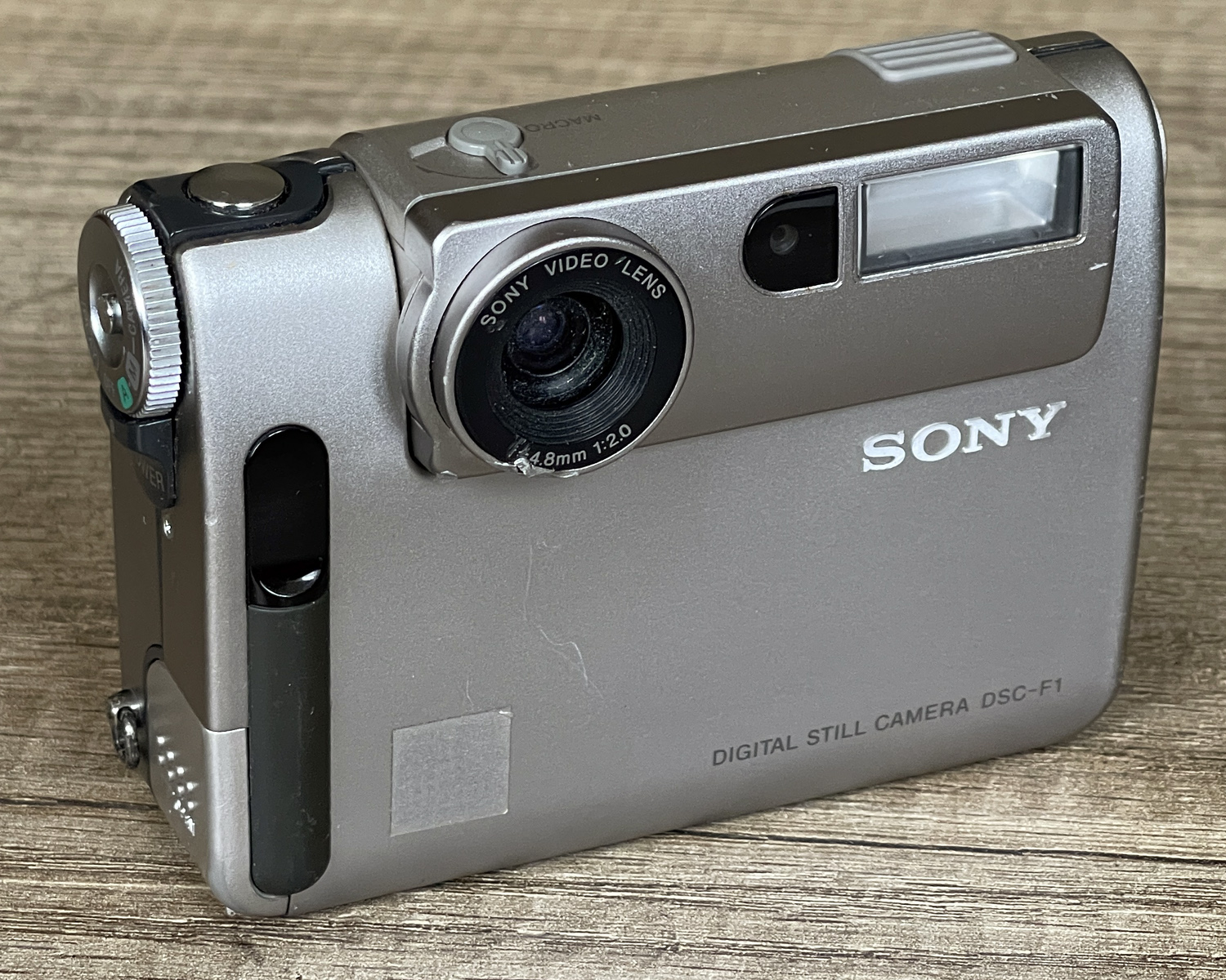 Die Sony DSC-F1 ist eine der sehr frühen Digitalkameras und basiert vermutlich in Teilen auf Videotechnologie des Konzerns. Das Design orientiert sich nicht an klassischen Kompaktkameras, sondern ist eigenständig. Aufgrund der recht kleinen Aufnahmeeinheit wurde diese in einem drehbarem Aufsatz montiert.