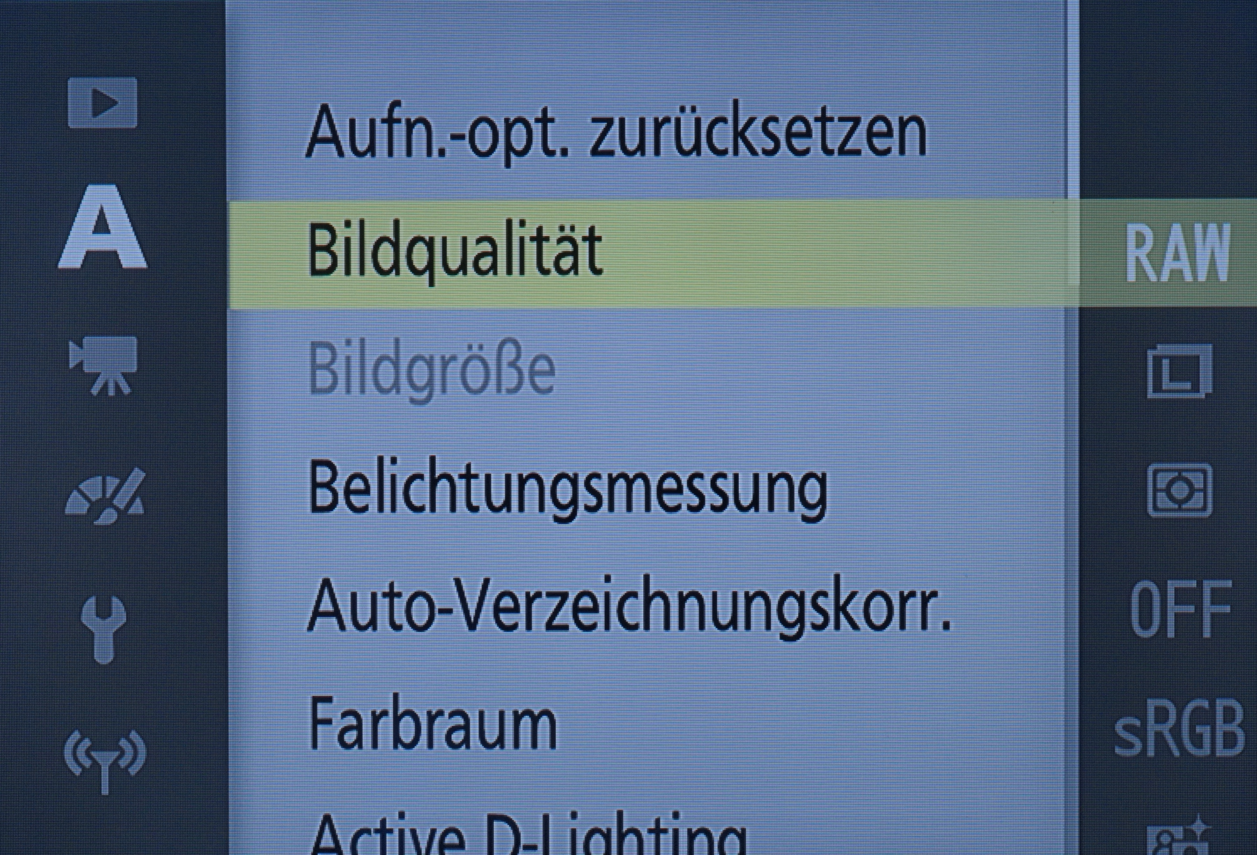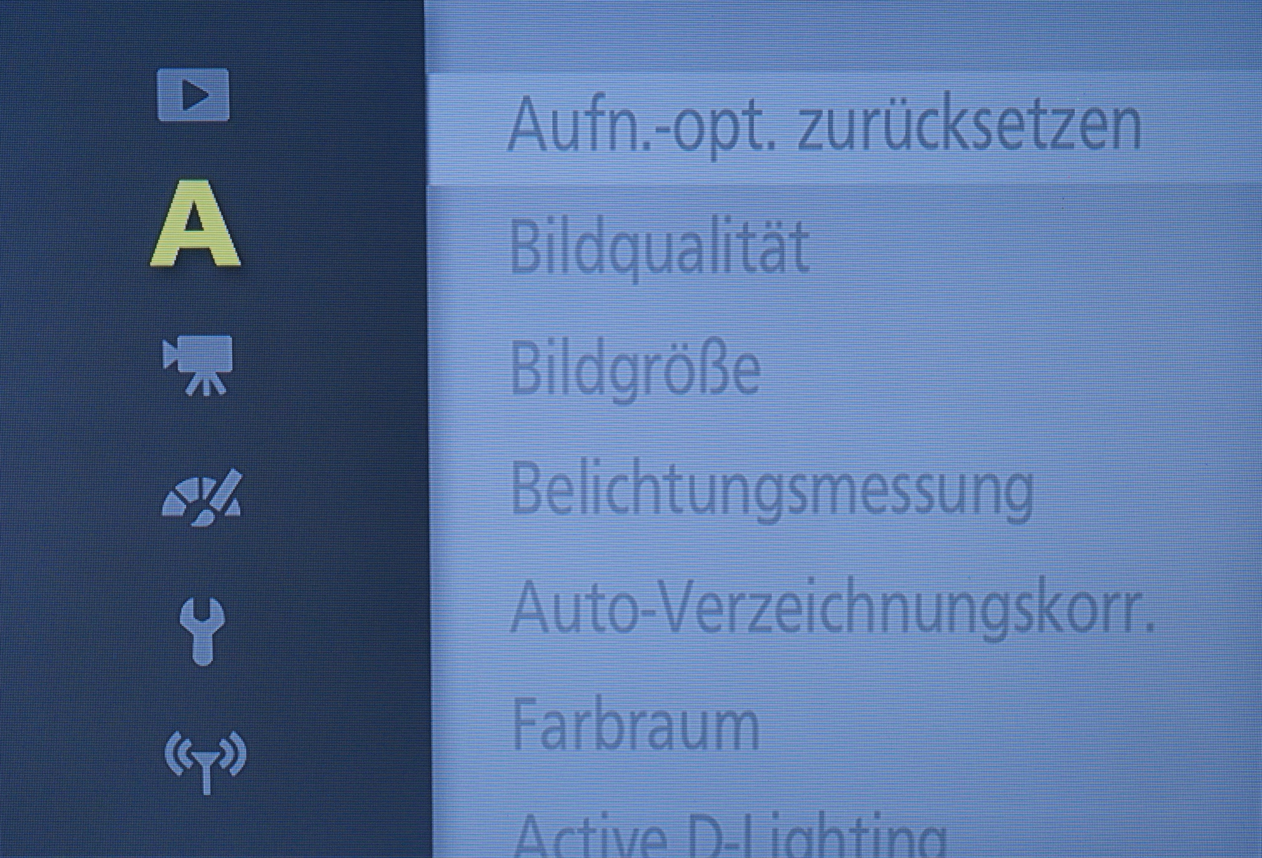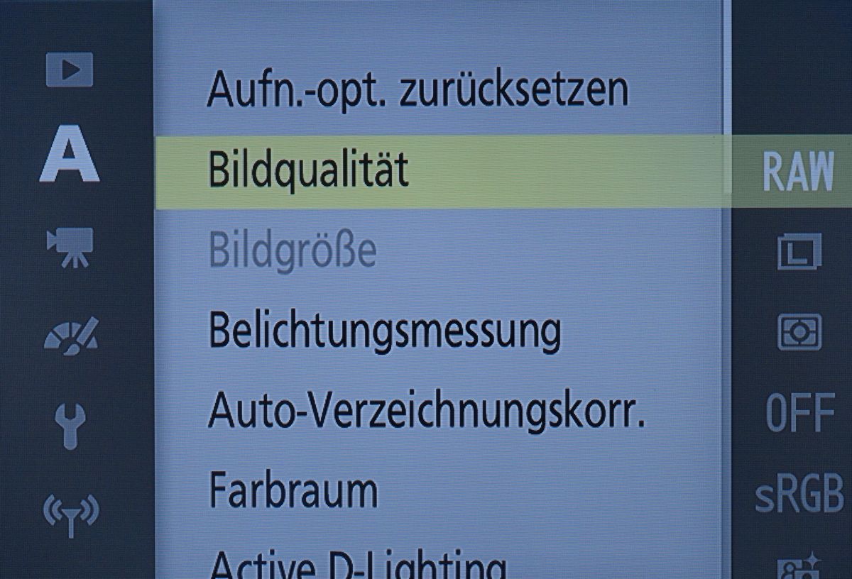 Neben dem schweren mechanischen Schaden ist der völlige „Blindflug“ der Nikon 1 V3 das bald noch größere Problem. Ich kann an der V3 per Modusrad auf der Kameraoberseite nur die grüne Vollautomatik wählen, die dann alles automatisch wählt: ISO, Verschlusszeit, Blende, Autofokuseinstellung, JPEG-Qualität und so weiter. Die Menü-/Einstellmöglichkeiten der Kamearückseite nützen nichts, weil der Monitor bis auf einen winzigen 1 mm Streifen „tot“ ist.