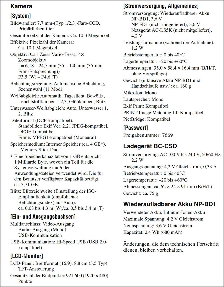 2023: Sony Cyber-shot DSC-T700, Update Mai 2023