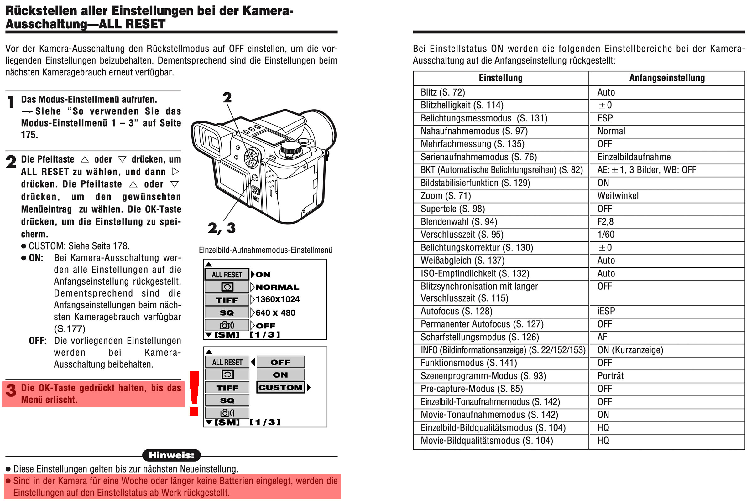 Rückstellen aller Einstellungen bei der Kamera-Ausschaltung — ALL RESET