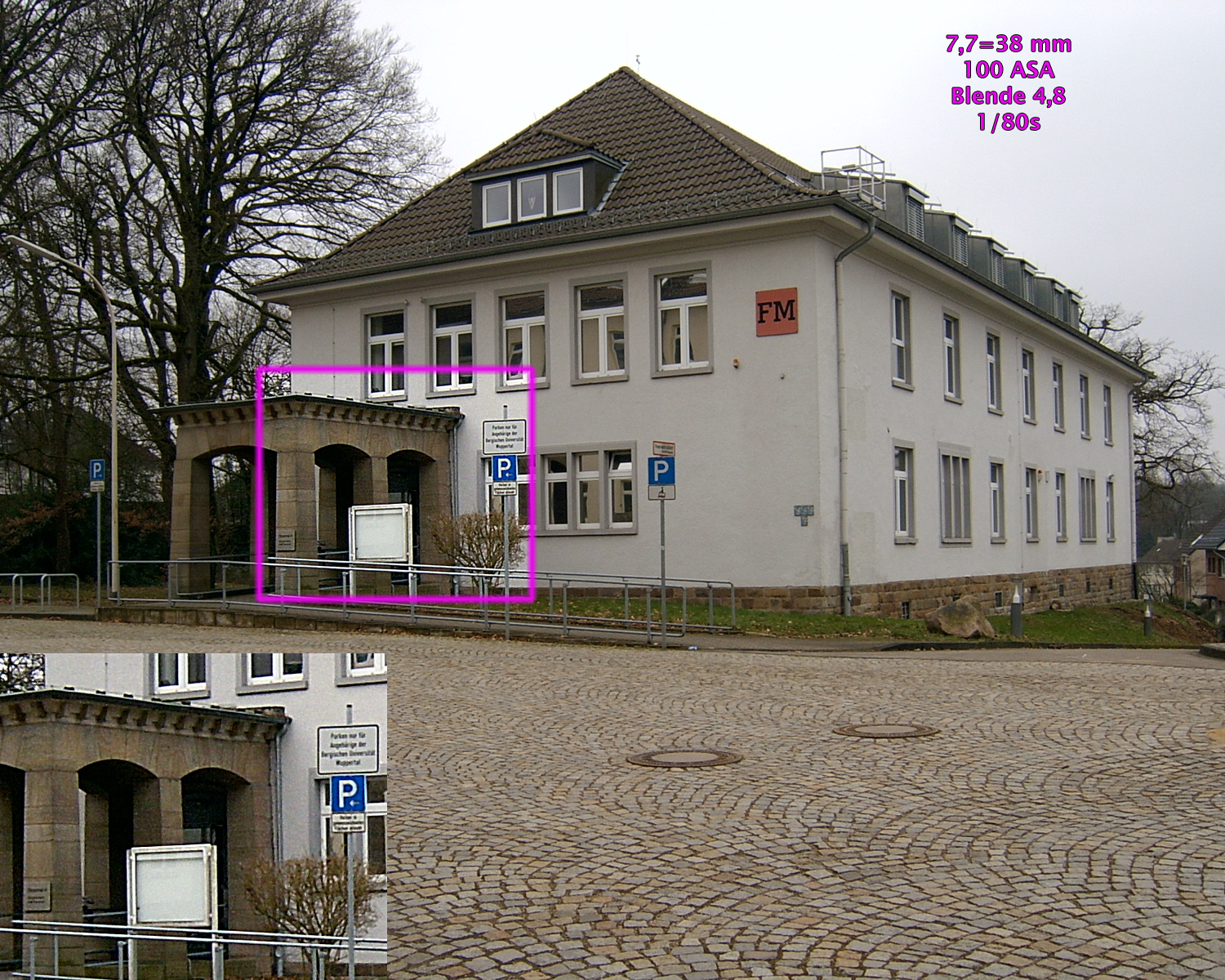 - Das Objektiv ist ein Schneider Kreuznach Varioplan 7,7-23,1mm/1:2,7-4,9 3-fach Zoom, die kb-äquivalente Brennweite beträgt 38-114mm.