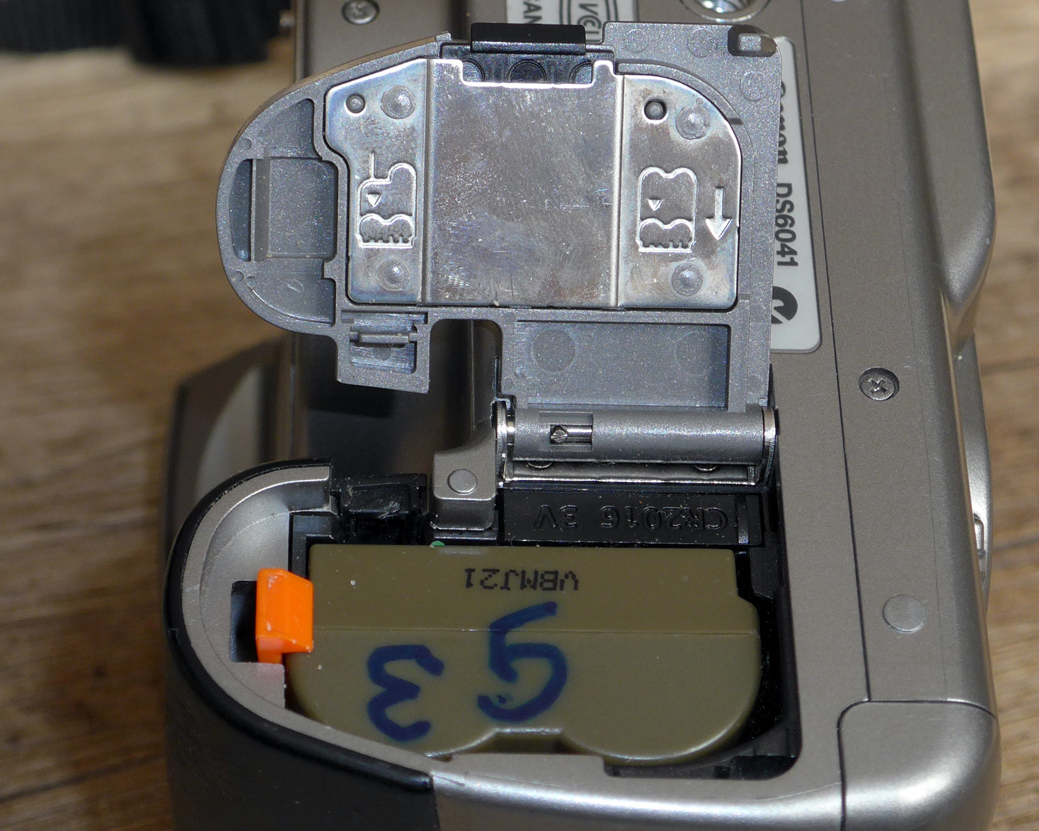 Zur Puffern der Kameraparameter und der Uhr ist im Kamera-Akkufach eine kleine Lithiumbatterie des Typs CR2016 vorhanden. Wenn die Kamera beim Akkuwechsel die Uhrzeit immer wieder vergißt, muß diese Batterie ersetzt werden.