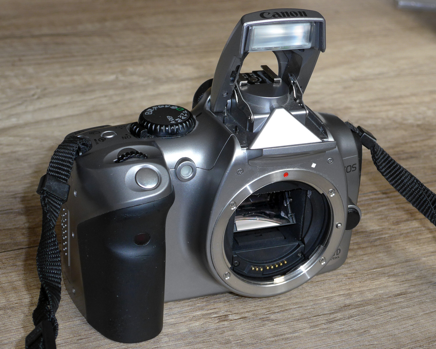 Boris hat dieses Exemplar hier bereits vorgestellt, Ralf zeigt eine funktionsfähige EOS 300D in seinem Praxisbericht.