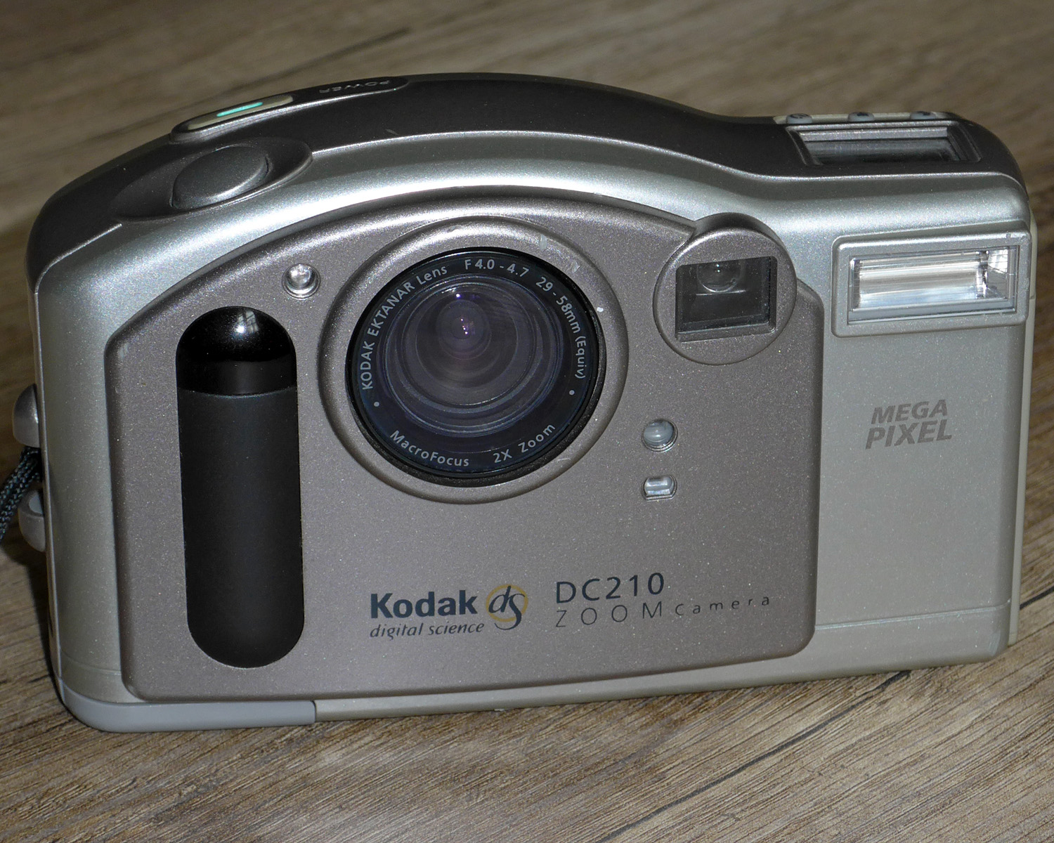 - Die DC210 gehört in die Klasse der frühen Massen-Kompaktkameras. Kodak hat sie nur vertrieben, entwickelt und hergestellt hat sie Chinon in Japan (wobei diese Firma damals bereits ein Kodak-Tochterunternehmen war). Der Sensor ist eine Kodak-Eigenentwicklung, seine Empfindlichkeit ist mir nicht bekannt.