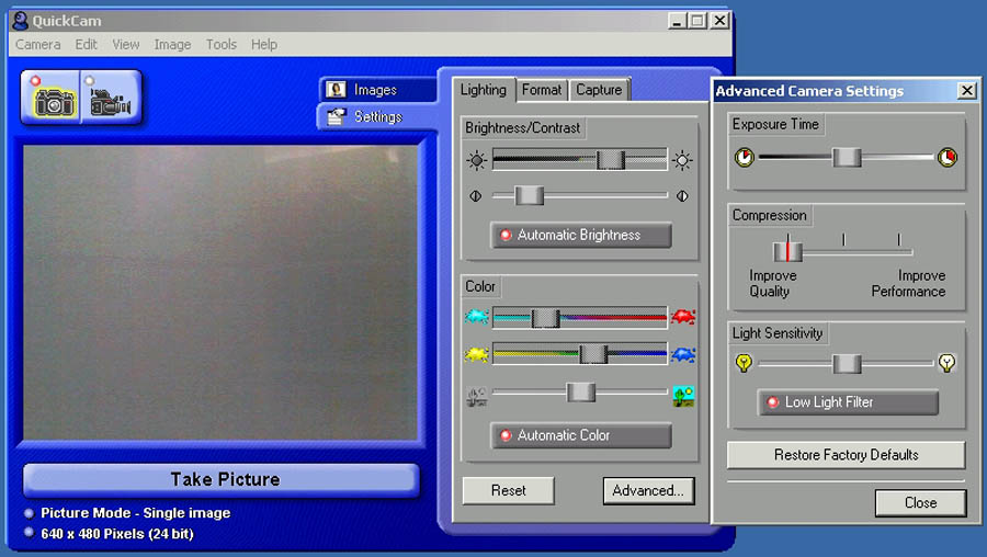 Um die alte QuickCam VC in Betrieb nehmen zu können, bedarf es eins Computers, der noch einen LPT1-Parallelausgang für Drucker und entsprechende Geräte hat. Die Software ist hier zu finden und runterzuladen. Die Software war schnell installiert und die QuickCam VC angeschlossen.