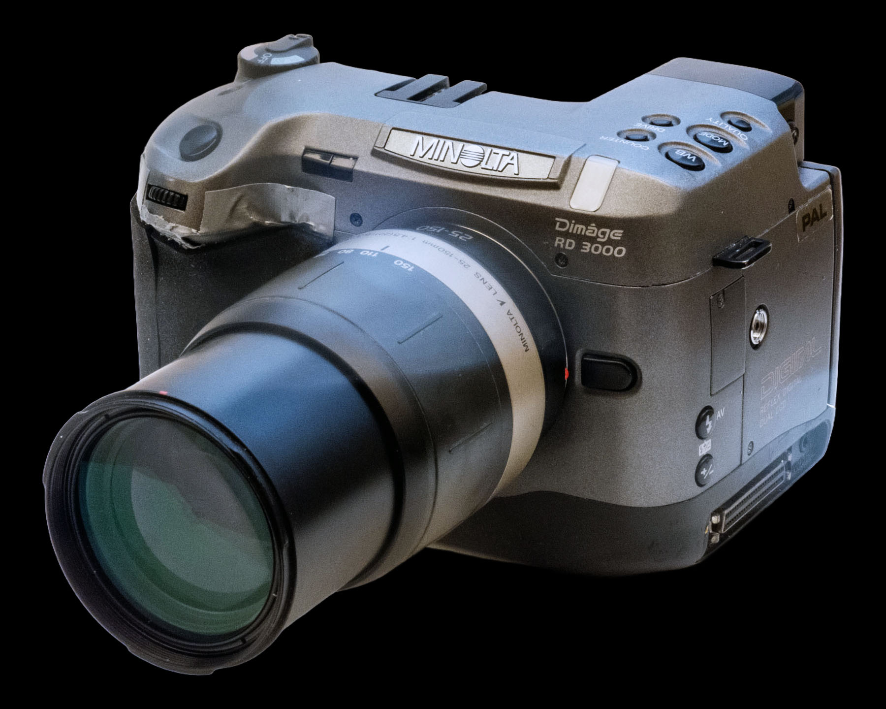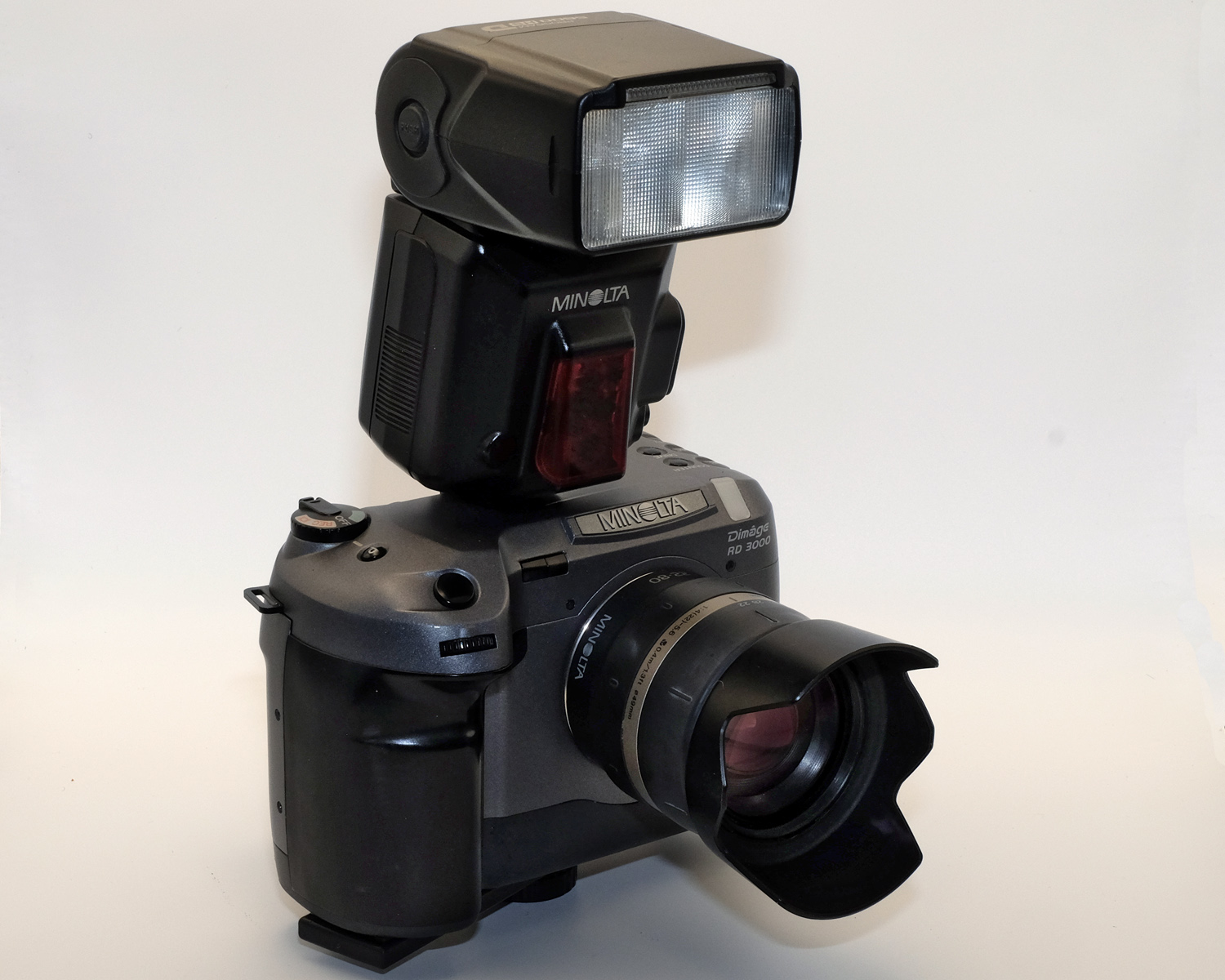 - Die 1999 vorgestellte Minolta RD 3000 ist 150 x 101 x 117 mm groß und wiegt mit Akkus und Speicherkarte 1030 Gramm.