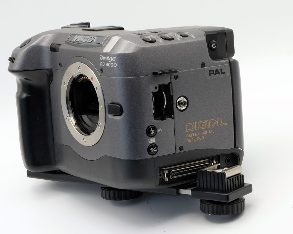- Die 1999 vorgestellte Minolta RD 3000 ist 150 x 101 x 117 mm groß und wiegt mit Akkus und Speicherkarte 1030 Gramm.