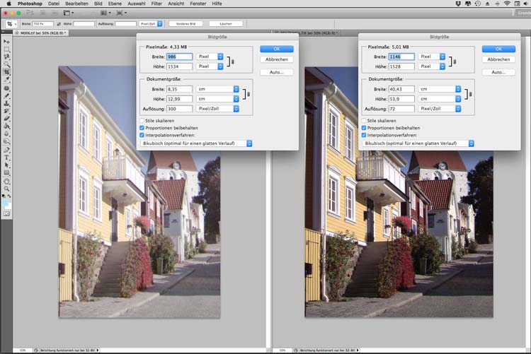 Jeweils links die von GraphicConverter erzeugte TIFF-Datei.