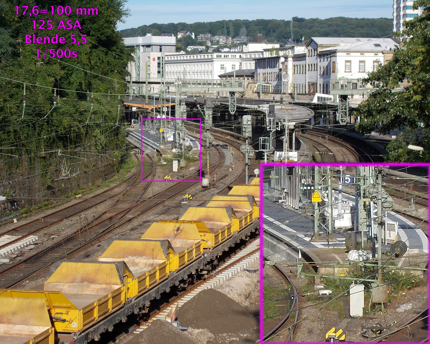 Der Sensor (in Verbindung mit der internen JPEG-Bildverarbeitung) schlägt sich überhaupt nicht gut. Der Pixelpitch ist viel zu klein, darum muß bereits bei 80 ASA die Rauschunterdrückung eingreifen, trotzdem gibt es sichtbares Rauschen (z. B. im Himmel) und es entsteht „Bildermatsch“. Kritische Gegenlichtsituationen müssen nur selten durch geschickte Bildauswahl, Andrücken des Auslösers und Verschwenken der Kamera oder durch eine Belichtungskorrektur vom Fotografen gemeistert werden. Auch bei 80 ASA kommt es zu sichtbaren Artefakten des Schärfungsalgorhythmus des Bildprozessors.