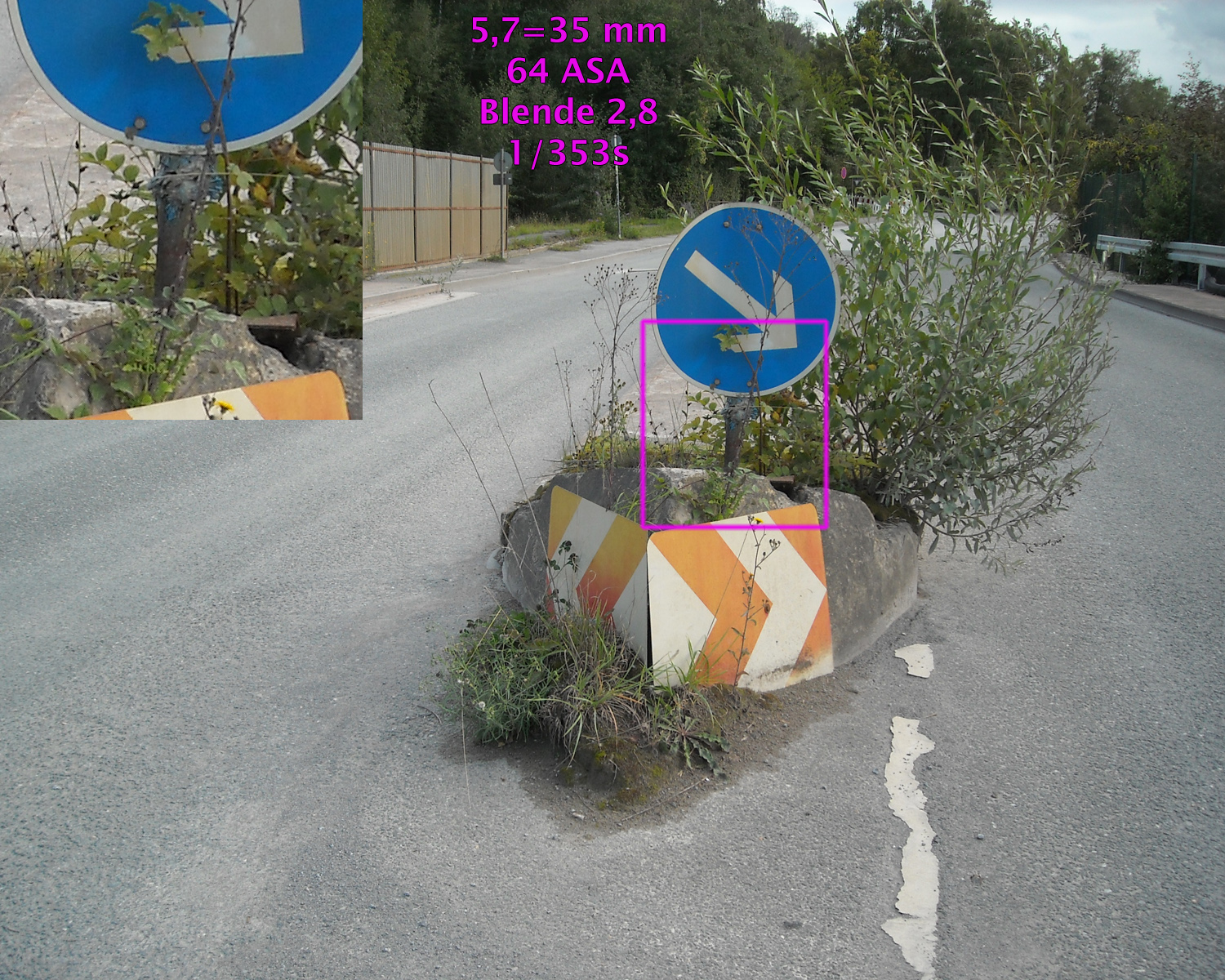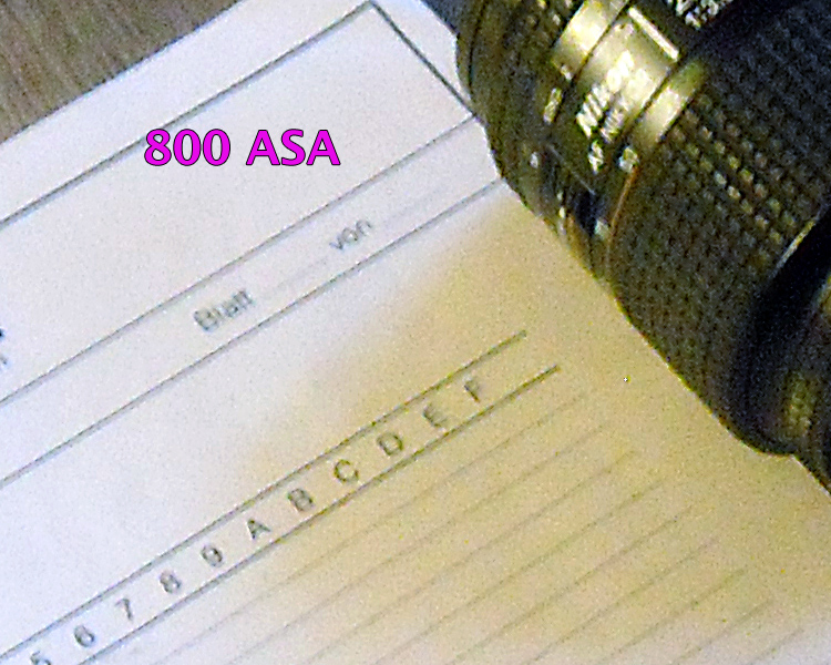 Die Kamera weiß um ihre Probleme und vermeidet es möglichst lange, höhere ASA-Werte zu benutzen.
