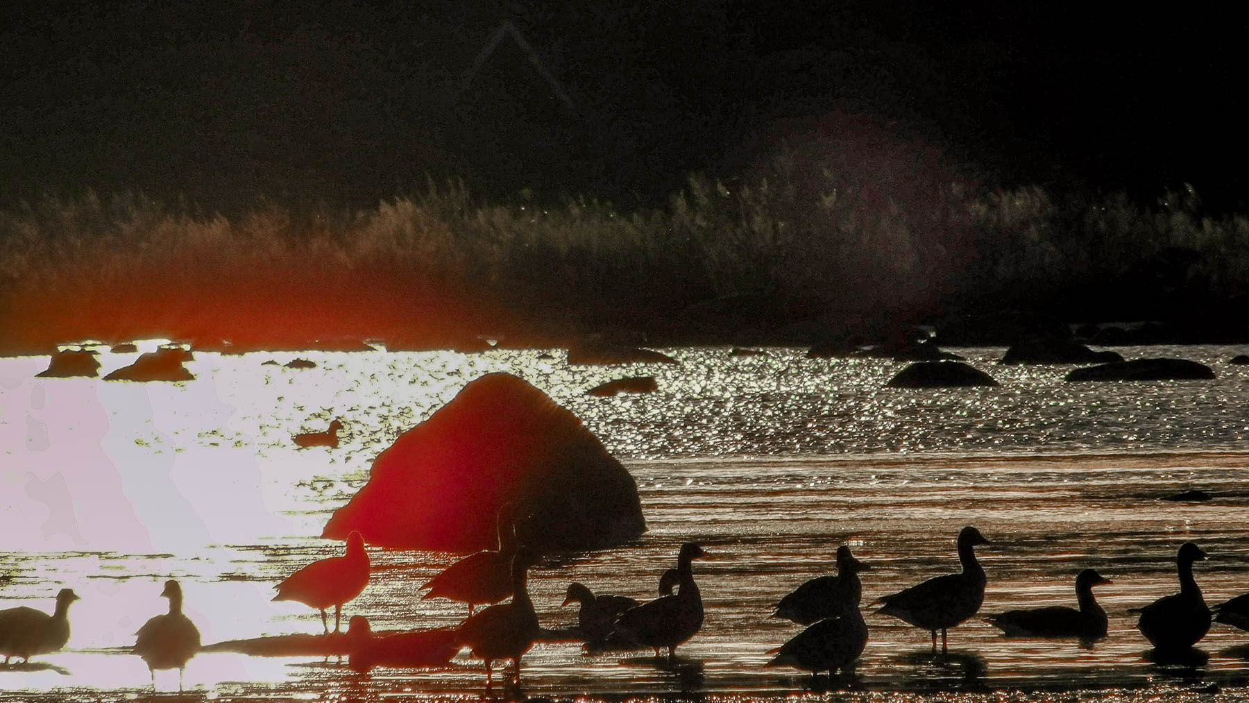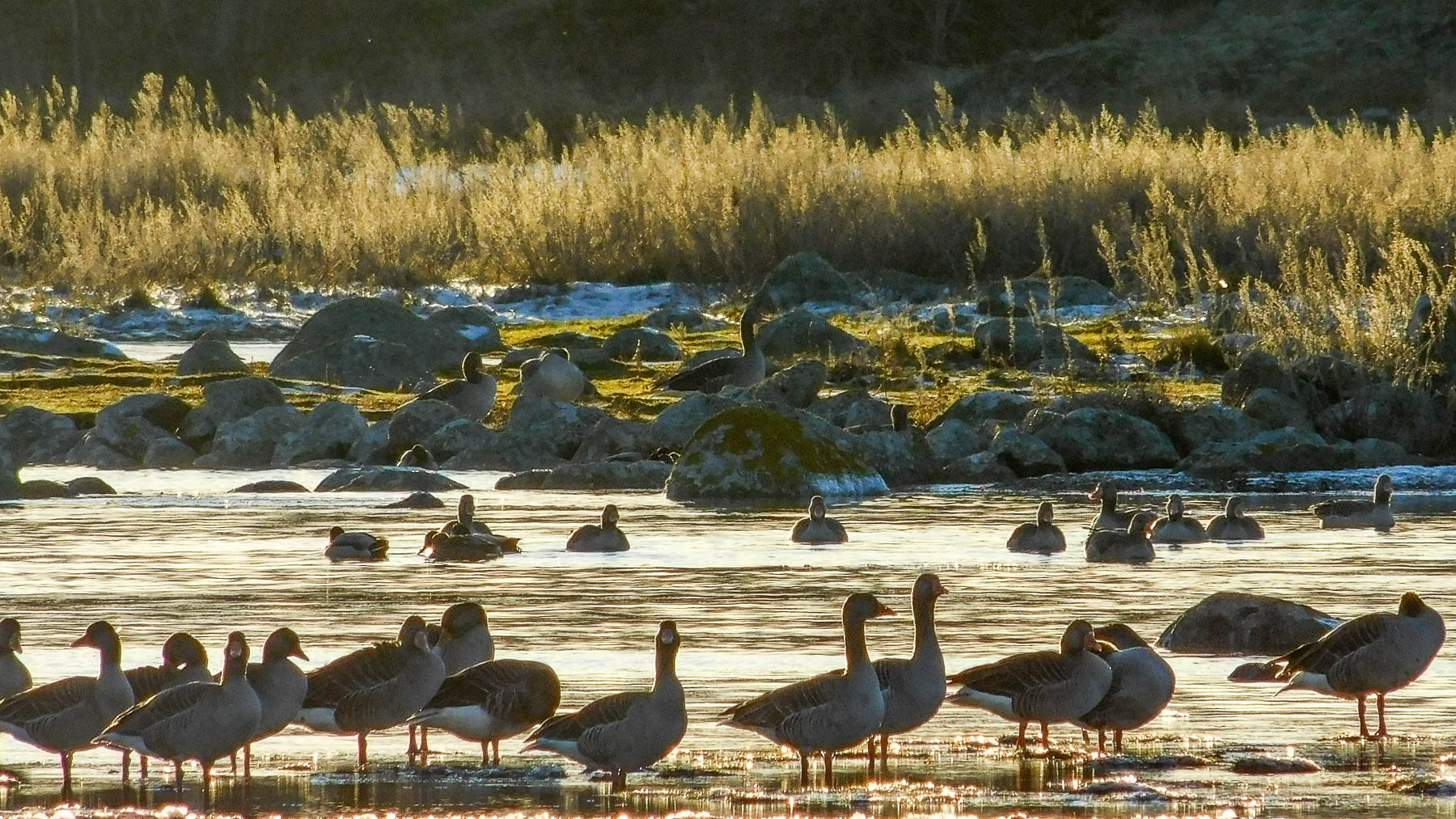 Dass die Gänse bei Null-Temperaturen auf dem Eis nicht frieren …