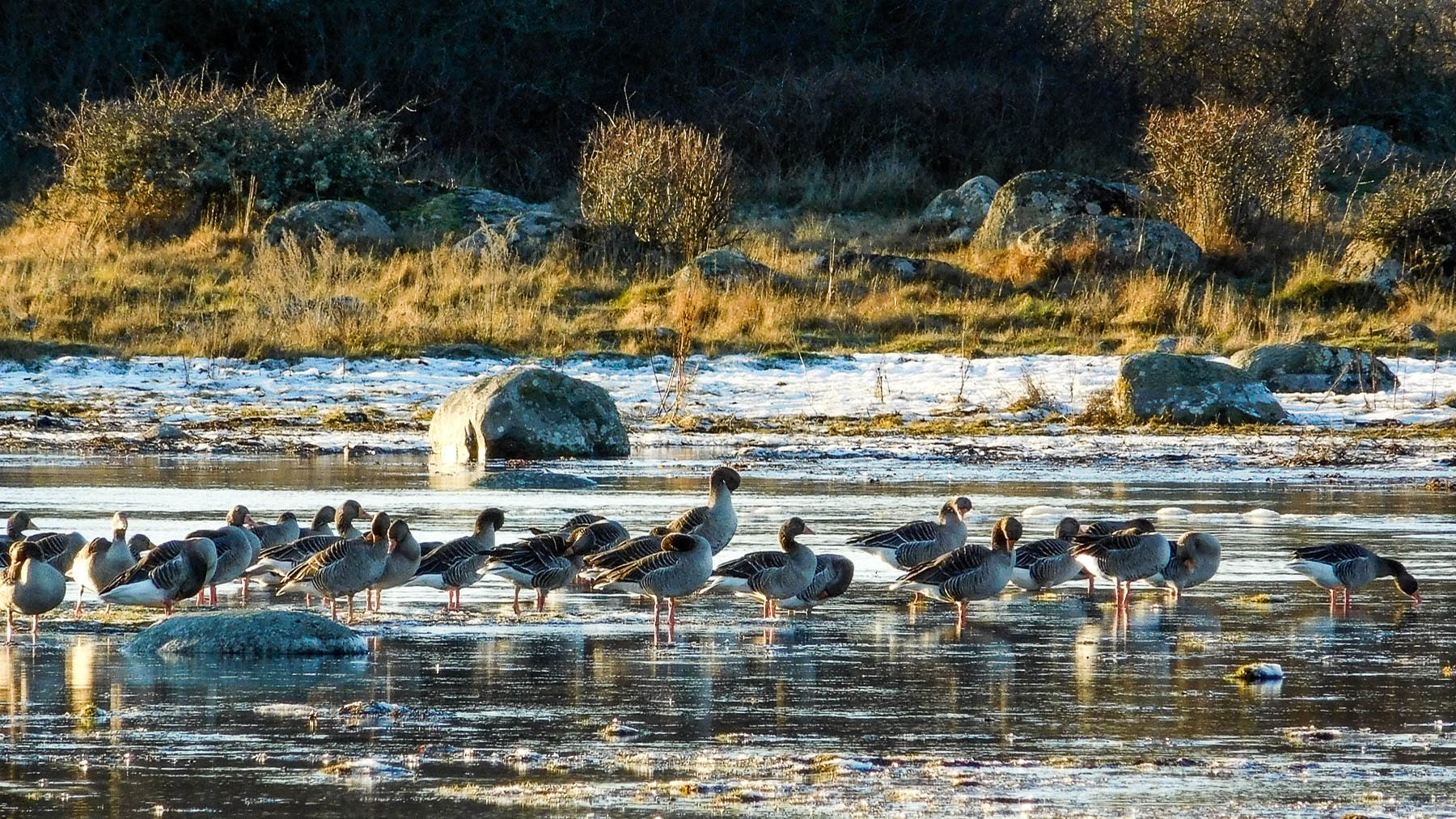 Dass die Gänse bei Null-Temperaturen auf dem Eis nicht frieren …