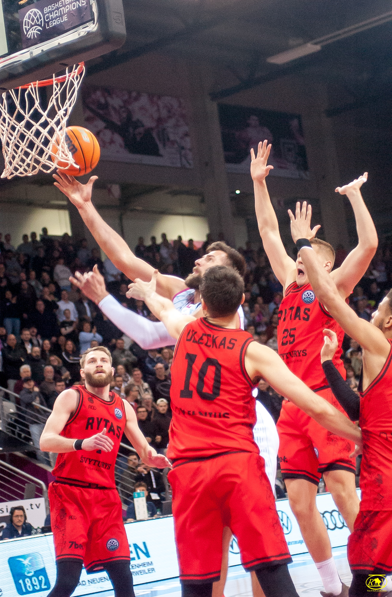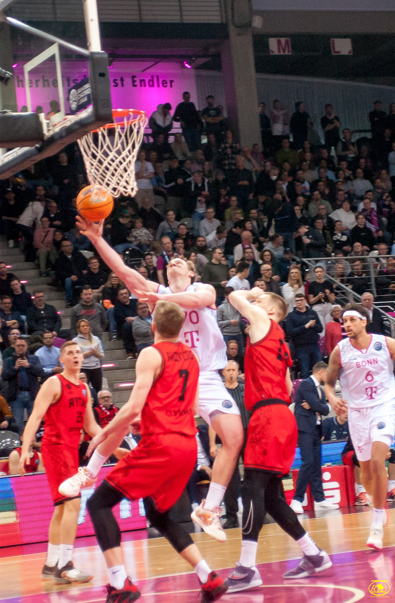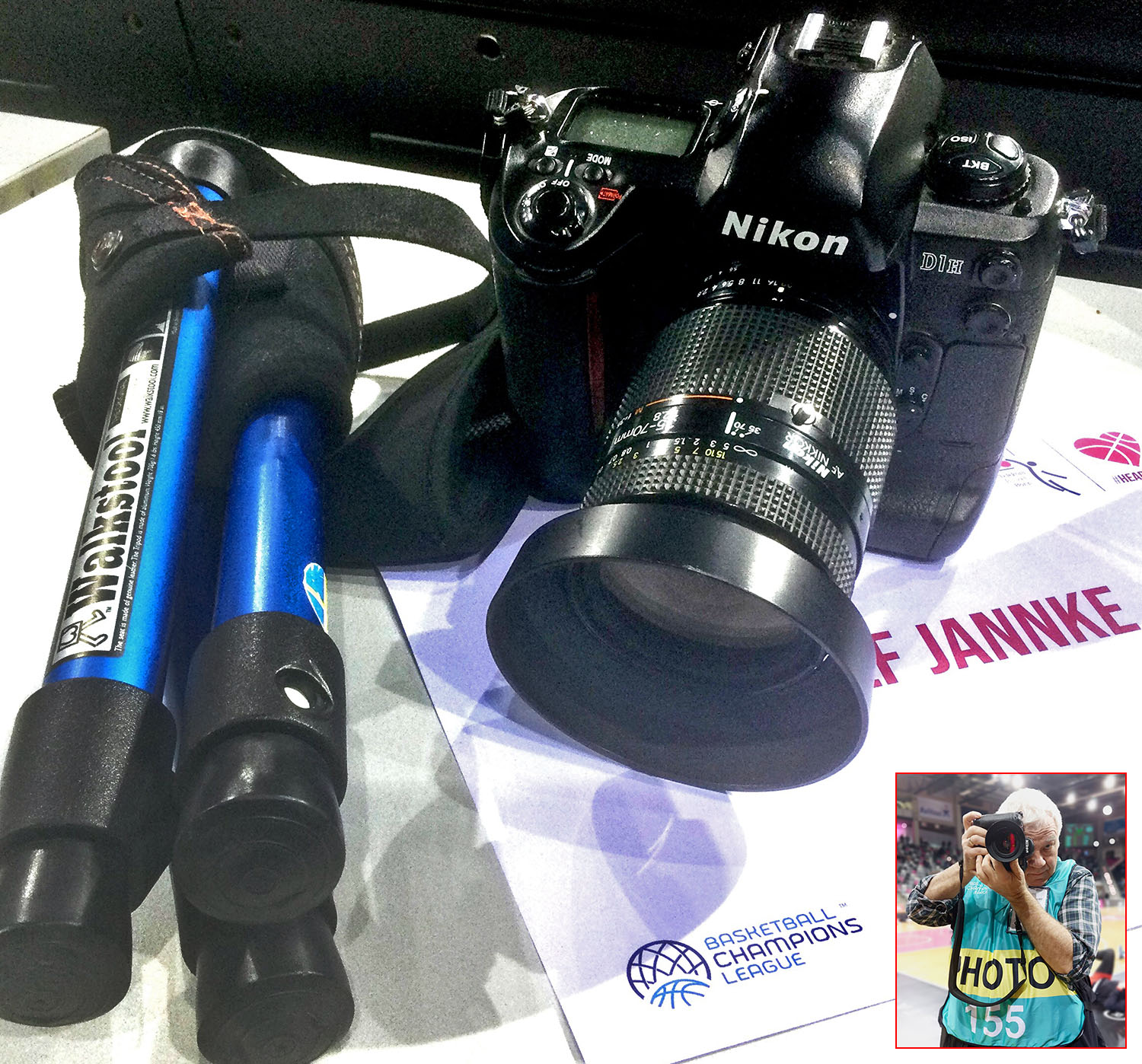Zunächst sollte das 3,5-4,5/35-105 mm mit in die Basketballhalle. Nach der erfolgreichen Reparatur meines 2,8/35-70 mm AF Nikkors habe ich dem wegen der durchgehenden und höheren Lichtstärke den Vorzug gegeben. Zusätzlich hatte ich noch das brave 1,8/50 mm AF-D Nikkor eingesteckt, was ich dann aber nicht benutzt habe. Beim Basketballspiel reichen unterm Korb 35-70 mm x Crop 1,5 = 53-105 mm. Und mit Offenblende f/2,8 gab es Verschlusszeiten von mehrheitlich 1/640 s.