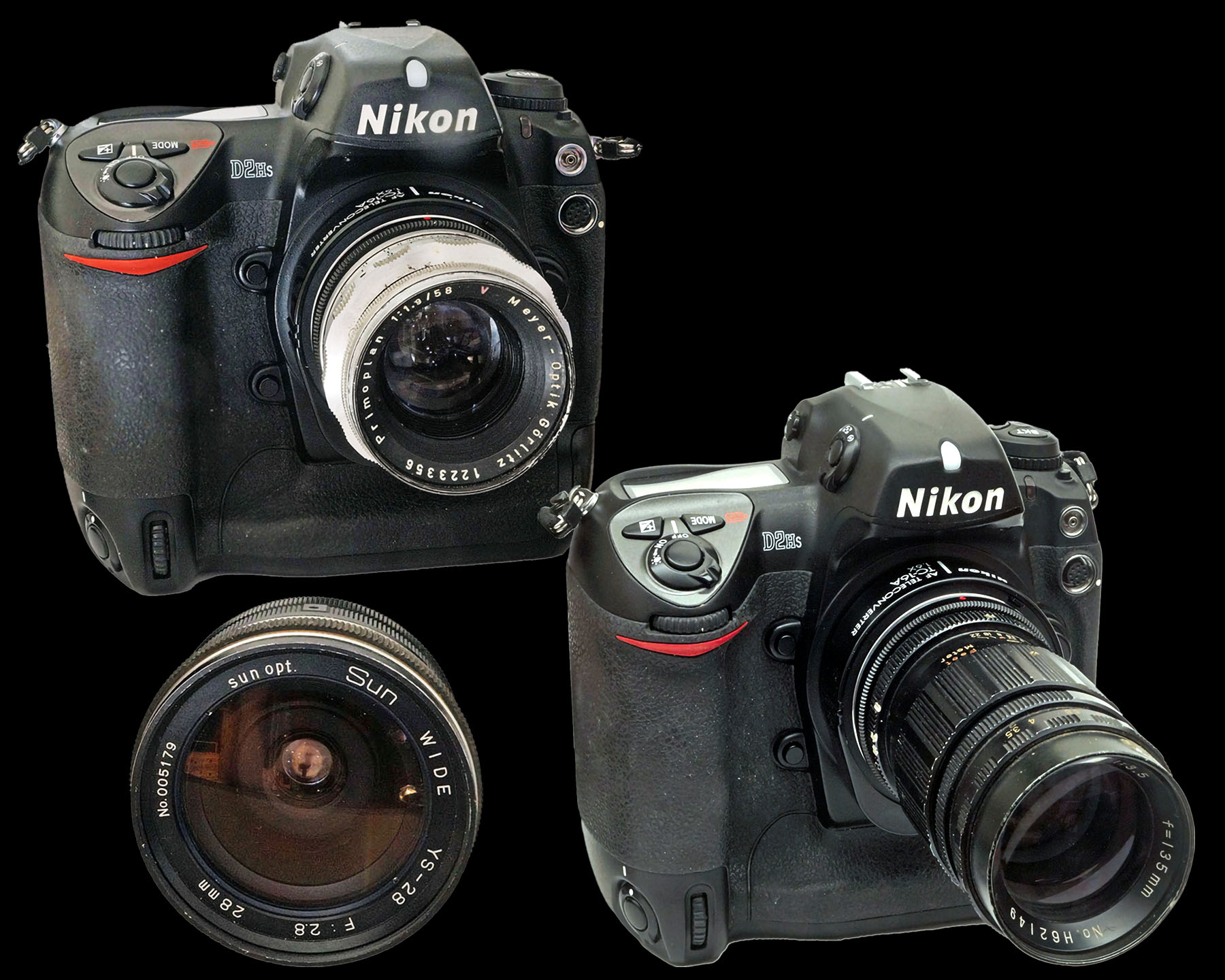Entsprechend habe ich Jahre später ein Meyer-Optik Görlitz Primoplan 1:1,9/58 V und ein SUN WIDE YS-28 F:2.8 28mm per M42-/Nikon F-Adapter MIT Korrekturlinse kurzerhand auf die mit dem TC-16A versehene Nikon D2Hs montiert. Und später noch ein SUN 1:3.5 f=135mm auf die Nikon D2Hs mit TC-16A.