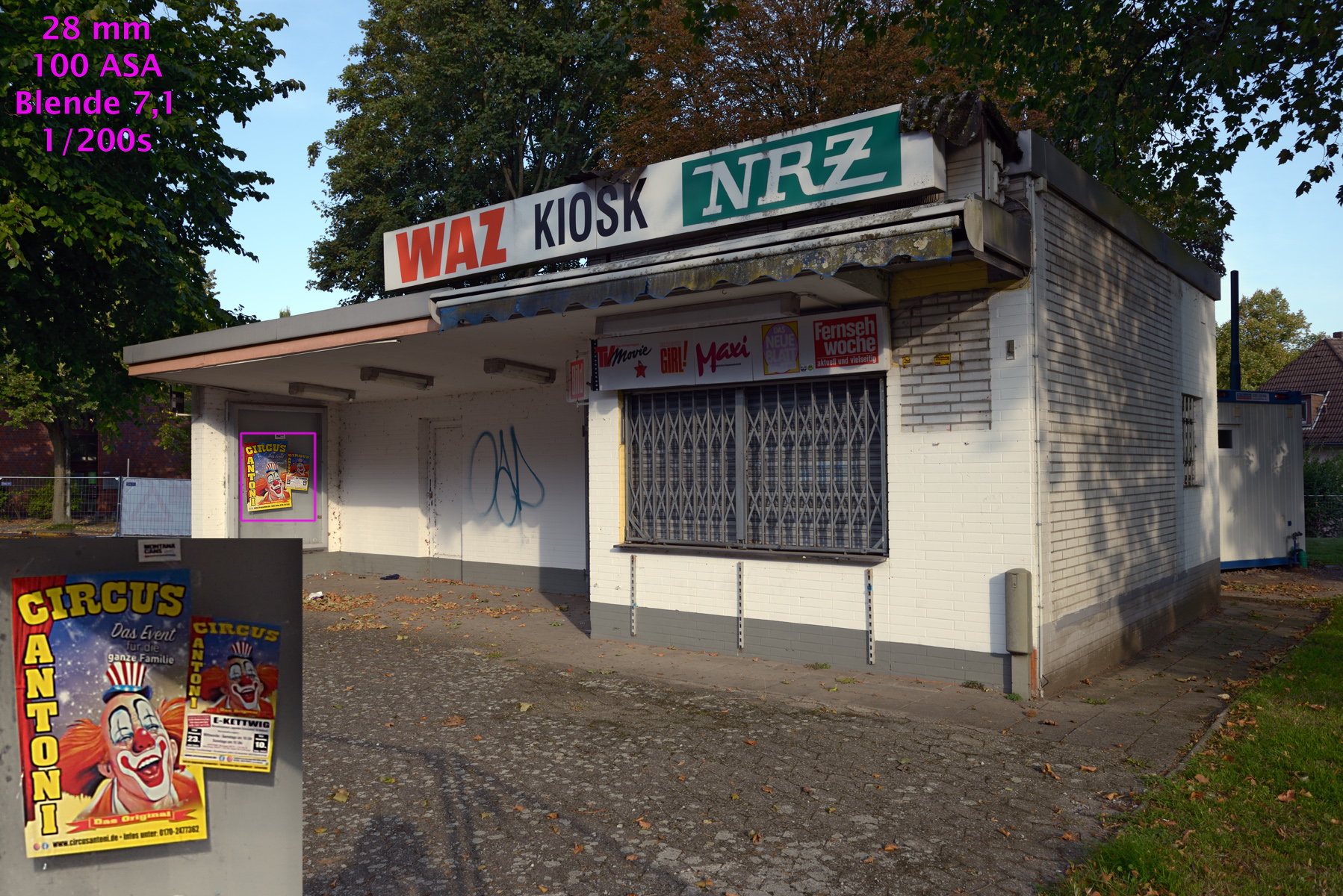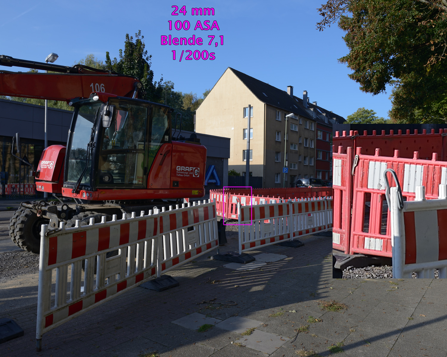 DX-Nikkore (also Objektive mit kleinerem Bildkreis für die APS-C-Kameras) können benutzt werden, die D800 schaltet automatisch in einen kleineren Bildmodus um und blendet einen entsprechenden Rahmen im Sucher ein. Sowohl in JPEGs als auch in NEFs werden die überflüssigen Bildpixel nicht aufgezeichnet, die effektive Auflösung sinkt auf etwa 15 Megapixel. Allerdings macht das Ganze in meinen Augen nur Sinn, wenn teure DX-Objektive an der D800 weiterverwendet werden, und keine APS-C - dSLR mehr im Besitz des Fotografen verblieben ist.
