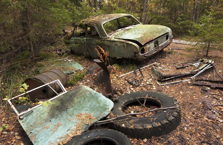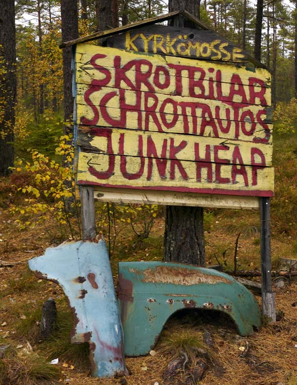 Zu den Bildern nur soviel: Bei jedem (Süd-) Schwedentrip „muss“ ein Besuch des im Kyrkö Moor (Kyrkö Mosse) unweit der schwedischen Kleinstadt Ryd mitten im Wald gelegenen Autofriedhofs drin sein. Dort dürfen rund 100 sich selbst überlassene Autowracks mit Kenntnis und Duldung der Behörden bis 2050 verrotten.