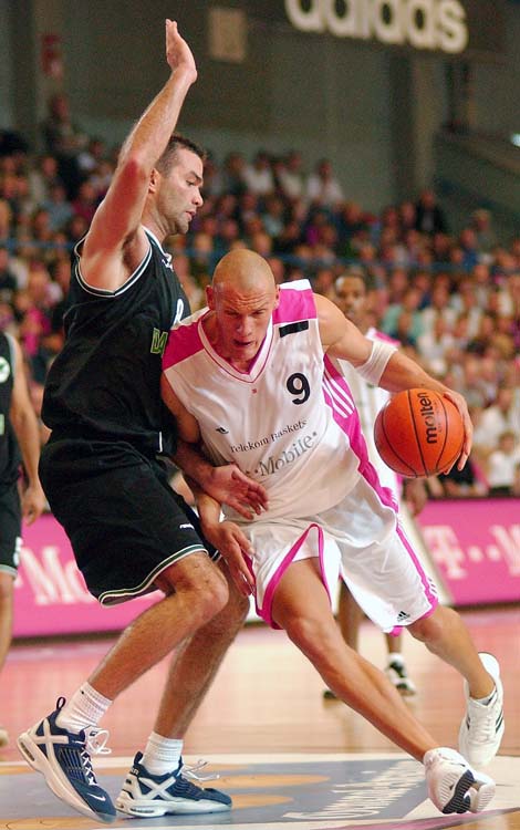 Vor aktuell im Oktober 2015 aufgenommenen Nikon D1X-Fotos noch eine Handvoll Archivbilder, fotografiert 2002 mit der parallel zur D1X vorgestellten 2,7 MP D1H. Die für Reportage- und Sportfotografie vorgesehene 5 B/s schnelle D1H durfte ich seinerzeit über das Magazin "digifoto" ein paar Tage leihen und habe sie in die vertraute Basketballhalle mitgenommen. Die Fotos entstanden mit dem 1,8/85 mm AF Nikkor auf der D1H.