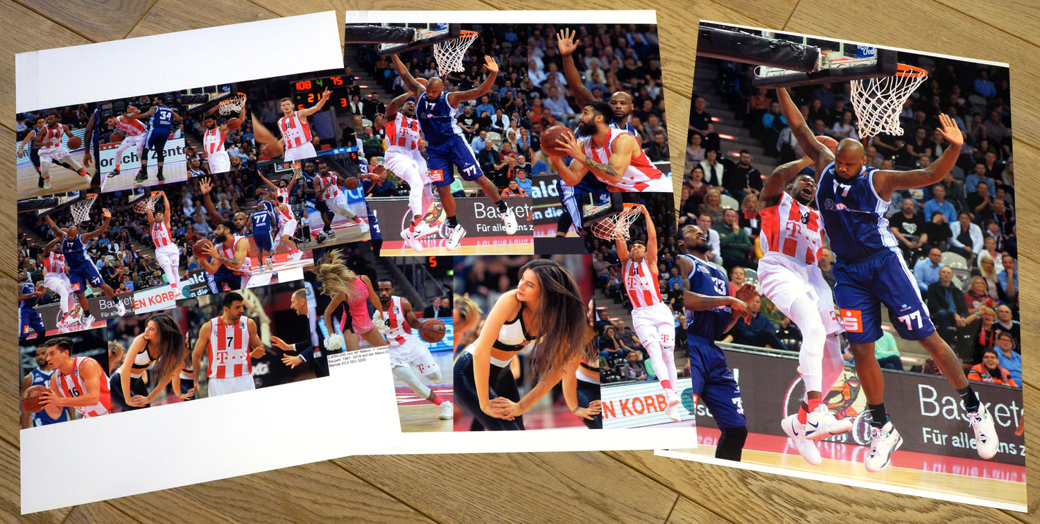 Vorab hatte ich den unvermeidlichen Test aufs Bücheregal gemacht, der sehr aufschlussreich war! Bis (lt. Exif) 145 mm Brennweite kann man beim 2,8/80-200 mm Zoom mit Offenblende fotografieren. Bei Endbrennweite 200 mm sollte man auf f/4 mindestens aber auf f/3,5 abblenden, wenn's gut werden soll. Keine wirkliche Überraschung, bedenkt man das Alter und den Einsatzzweck – analoges Fotografieren auf Film. Vielleicht ist es auch nur mein Exemplar. Also wird das 80-200 mm in der Basketballhalle bei f/3,5 betrieben.