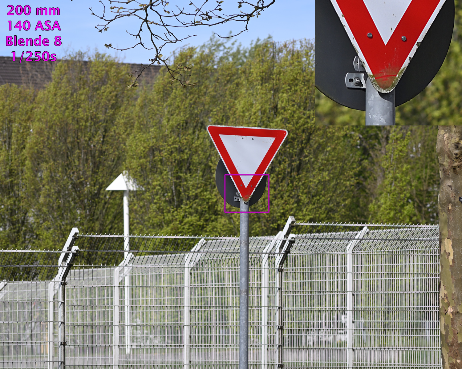 Alle Beispielaufnahmen entstanden freihand bei ASA-Automatik und Zeitautomatik, mit eingeschaltetem Bildstabilisator und bei Blende 8, gespeichert als RAW-Datenformat, gewandelt mit Nikon Capture NX und bearbeitet mit Photoshop CS6. Bildausschnitt, Helligkeit, Farben, Lichter / Schatten, chromatische Aberrationen sowie Schärfe wurden korrigiert, die Größe wurde auf 1500 Pixel bikubisch verkleinert. In alle Aufnahmen sind 100%-Ausschnitte vergrößert einmontiert.
