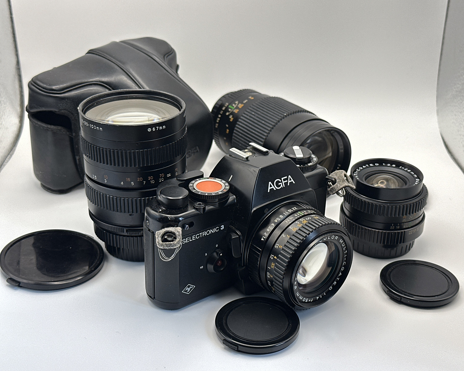 Die Objektivbeschriftungsringe sind mit Agfa gelabelt, Objektiv-Front und -Rückdeckel hingegen bekamen kein AGFA-Logo in die Spritzgußformen und entsprechen 1:1 dem Chinon-Design.